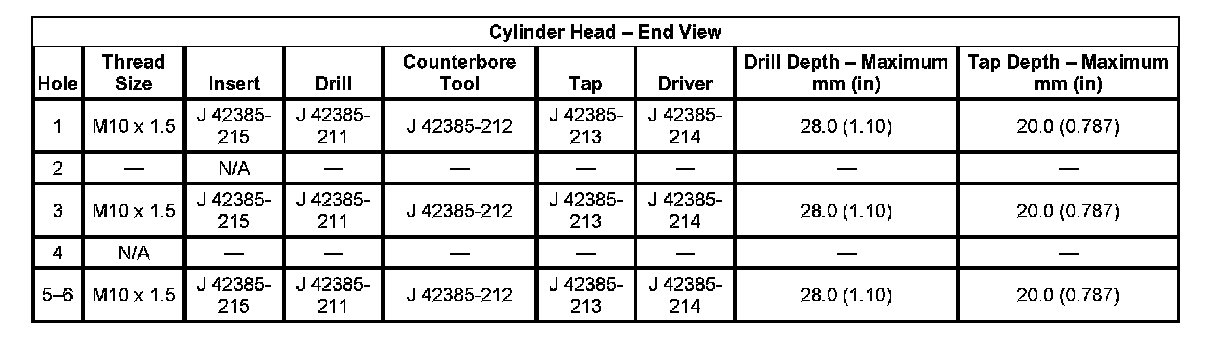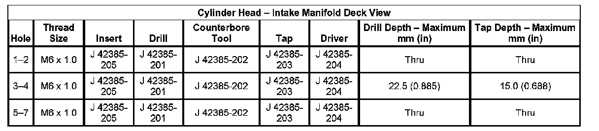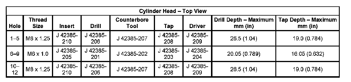 Thread Repair Specifications Engine Block: