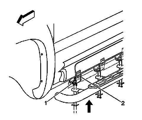 5. Install the 5 retaining bolts (2) to the inner side of the rocker panel.