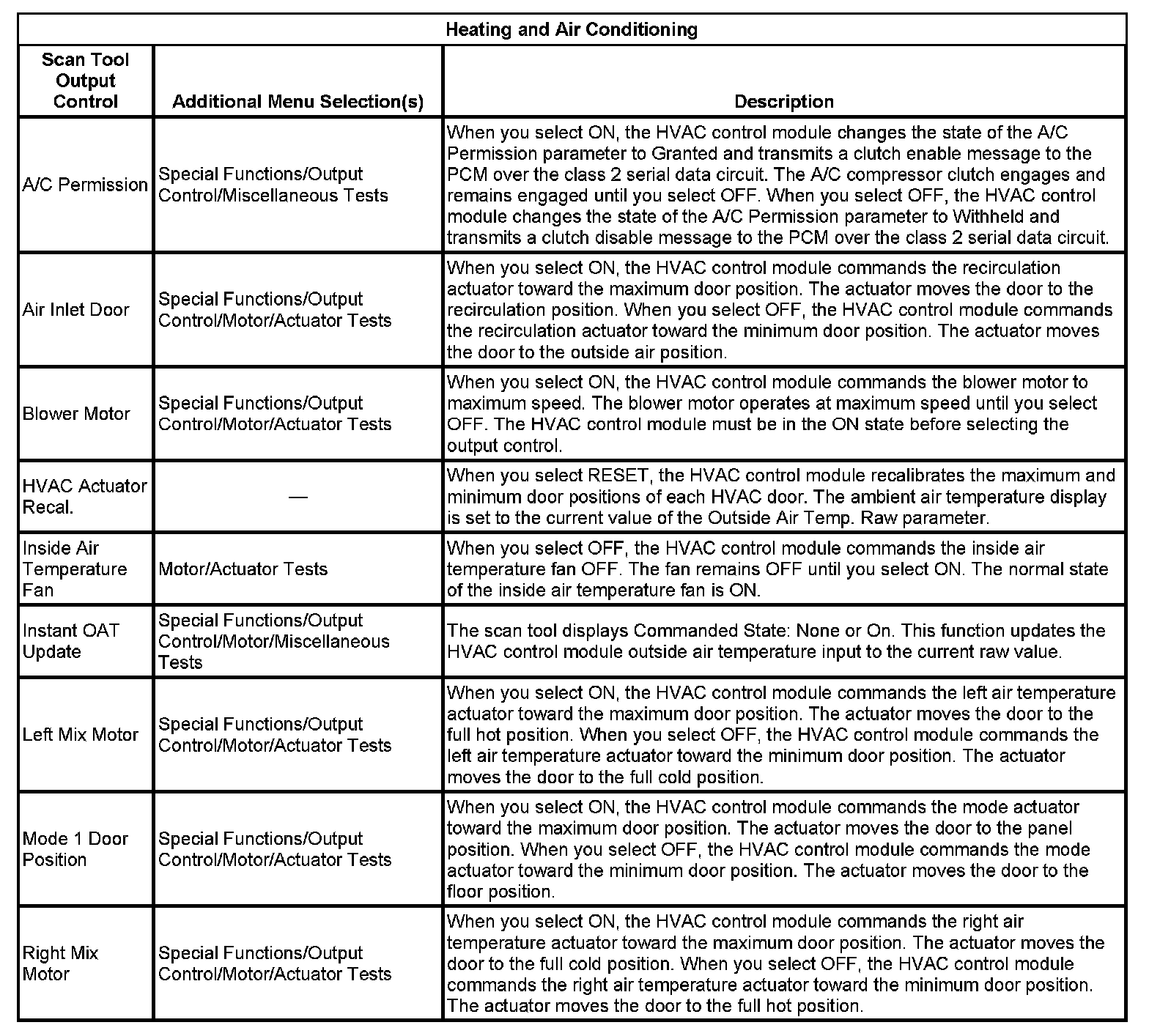 Scan Tool Testing - HVAC System - Automatic
