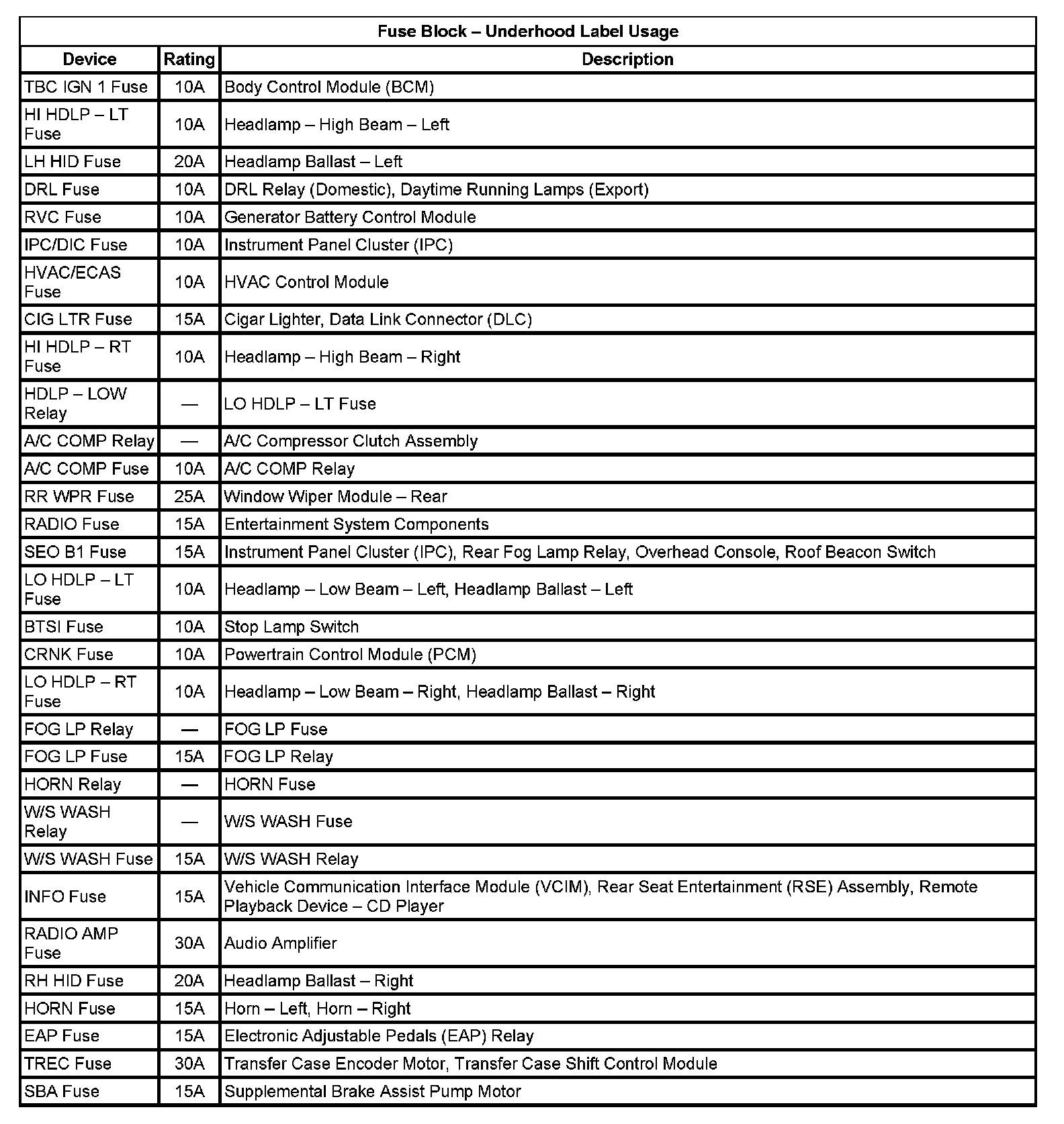 Application Table (Part 2):