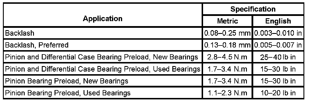 Axle Preload and Backlash Specifications: