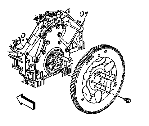 3. Apply threadlock GM P/N 12345382, (Canadian P/N 10953489) or equivalent to the threads of the flywheel bolts.