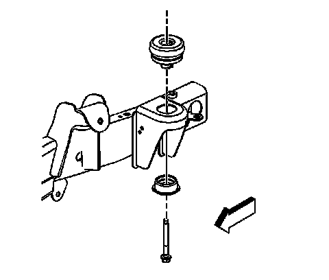 7. Install the body mount bolt, retainers, and lower cushions at the front mount location.