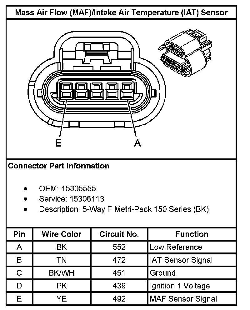 Mass Air Flow (MAF)/Intake Air Temperature (IAT) Sensor:
