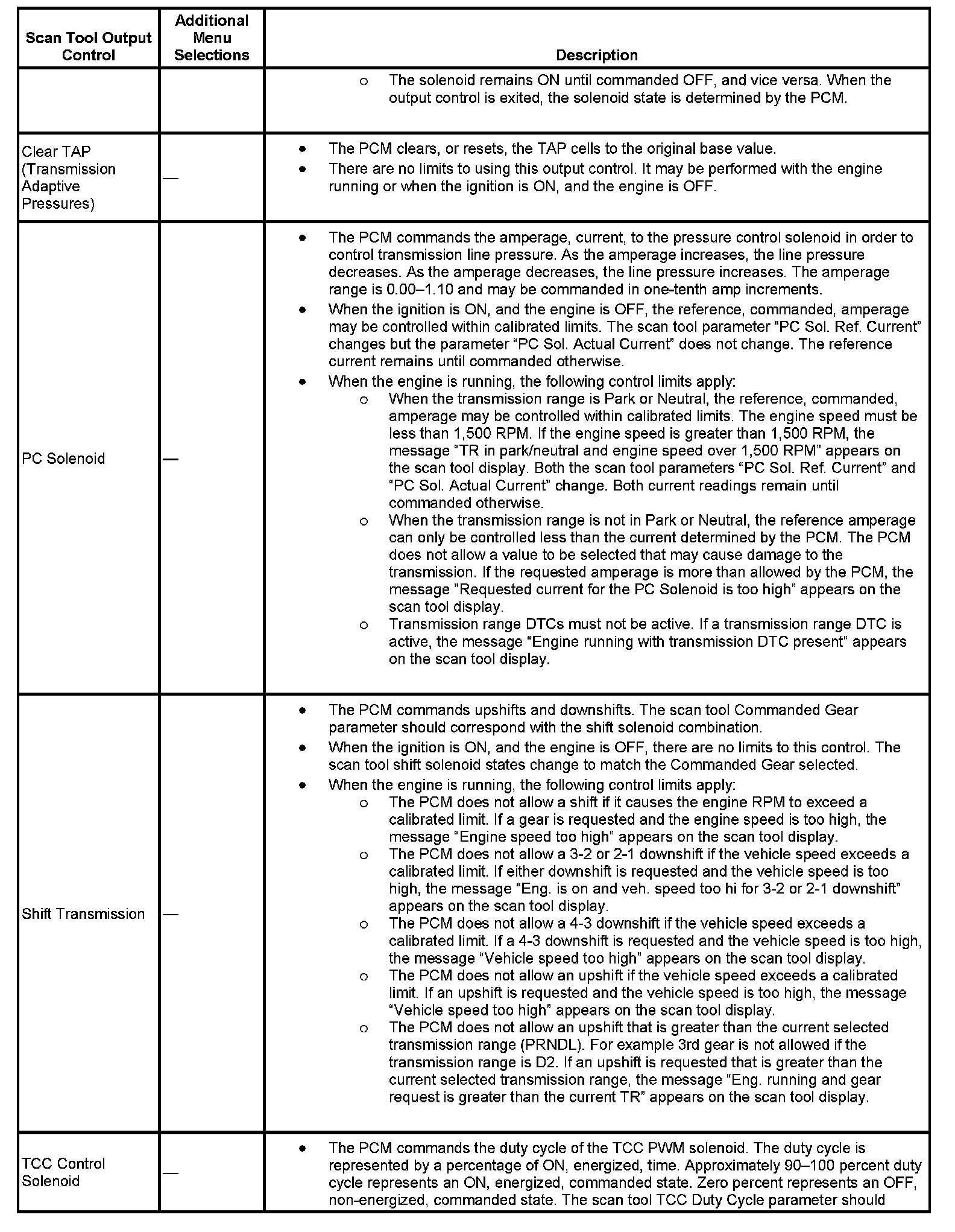 Scan Tool Output Controls: