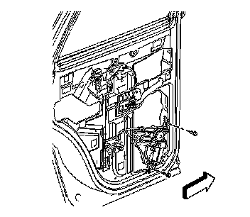 6. Remove the bolts retaining the window regulator to the door.