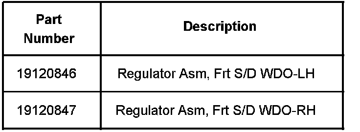 This bulletin is being revised to add the service procedure. Please discard Corporate Bulletin Number 05-08-64-029A (Section 08 - Body and Accessories). This bulletin is being issued to inform technicians that when performing a repair to the power window system, it is no longer necessary to replace the complete window regulator assembly. GMSPO has released the power window regulator for the left and right front doors separately from the motor.