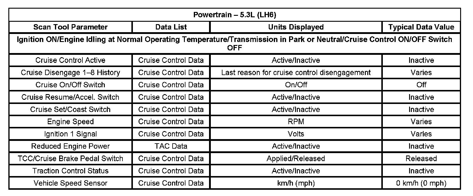 Scan Tool Data List