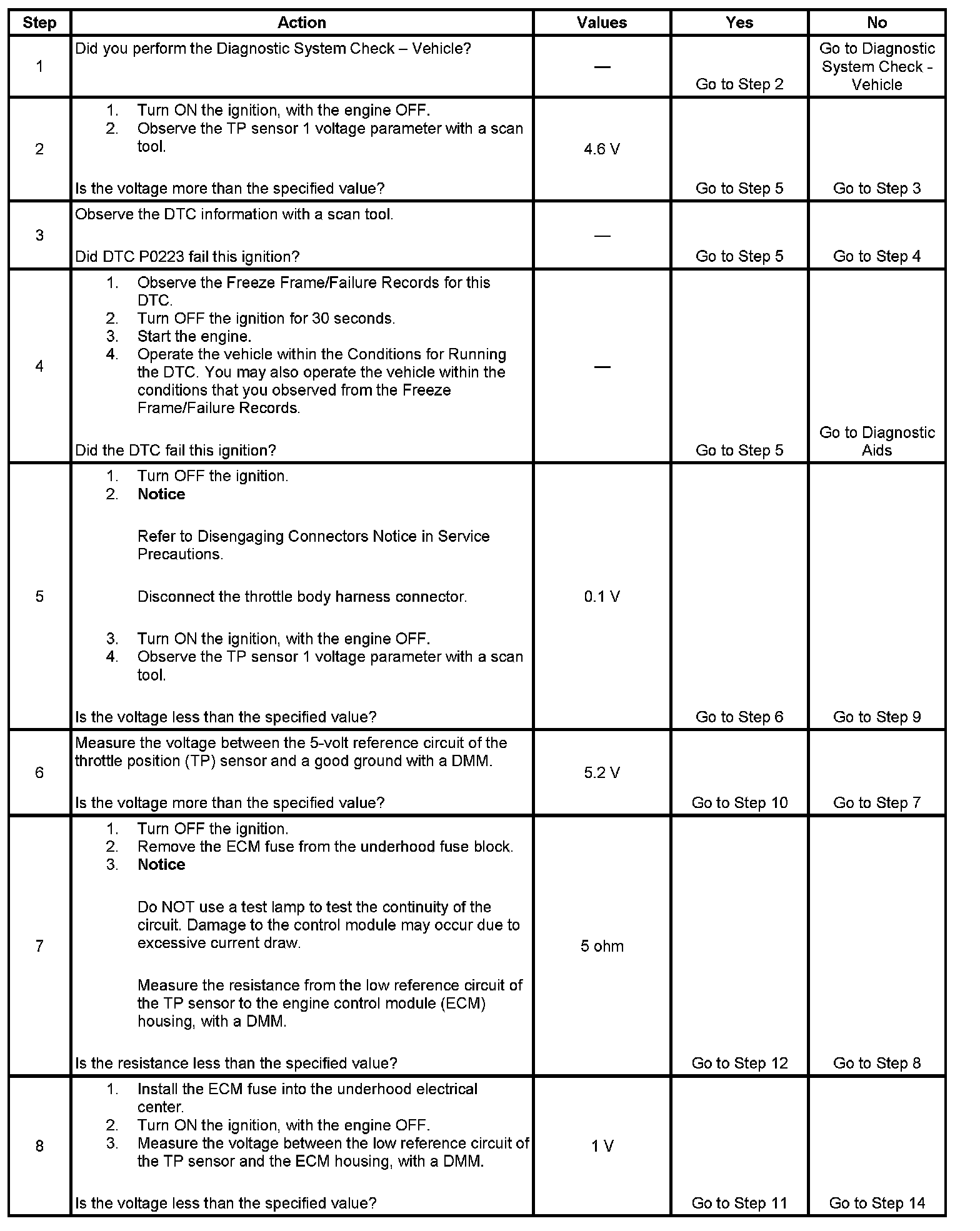 DTC P0123 Throttle Position (TP) Sensor 1 Circuit High Voltage