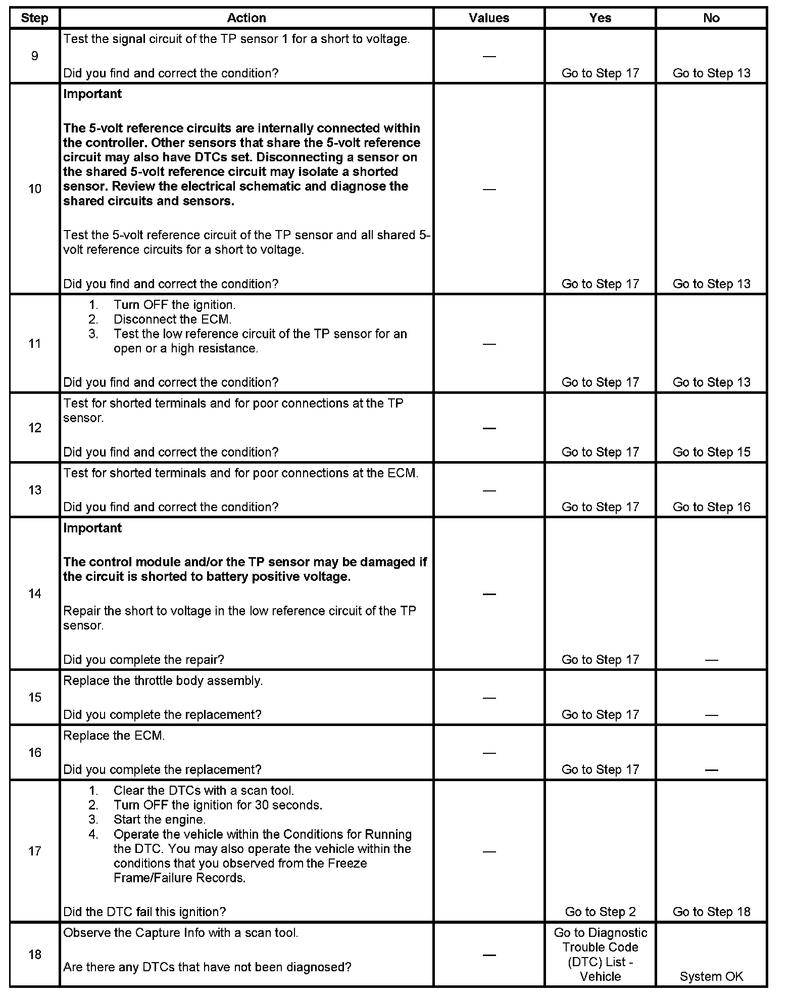 5. This step tests the signal circuit for a short to voltage. If the scan tool displays a voltage after the TP sensor is disconnected, the circuit is shorted to a voltage.