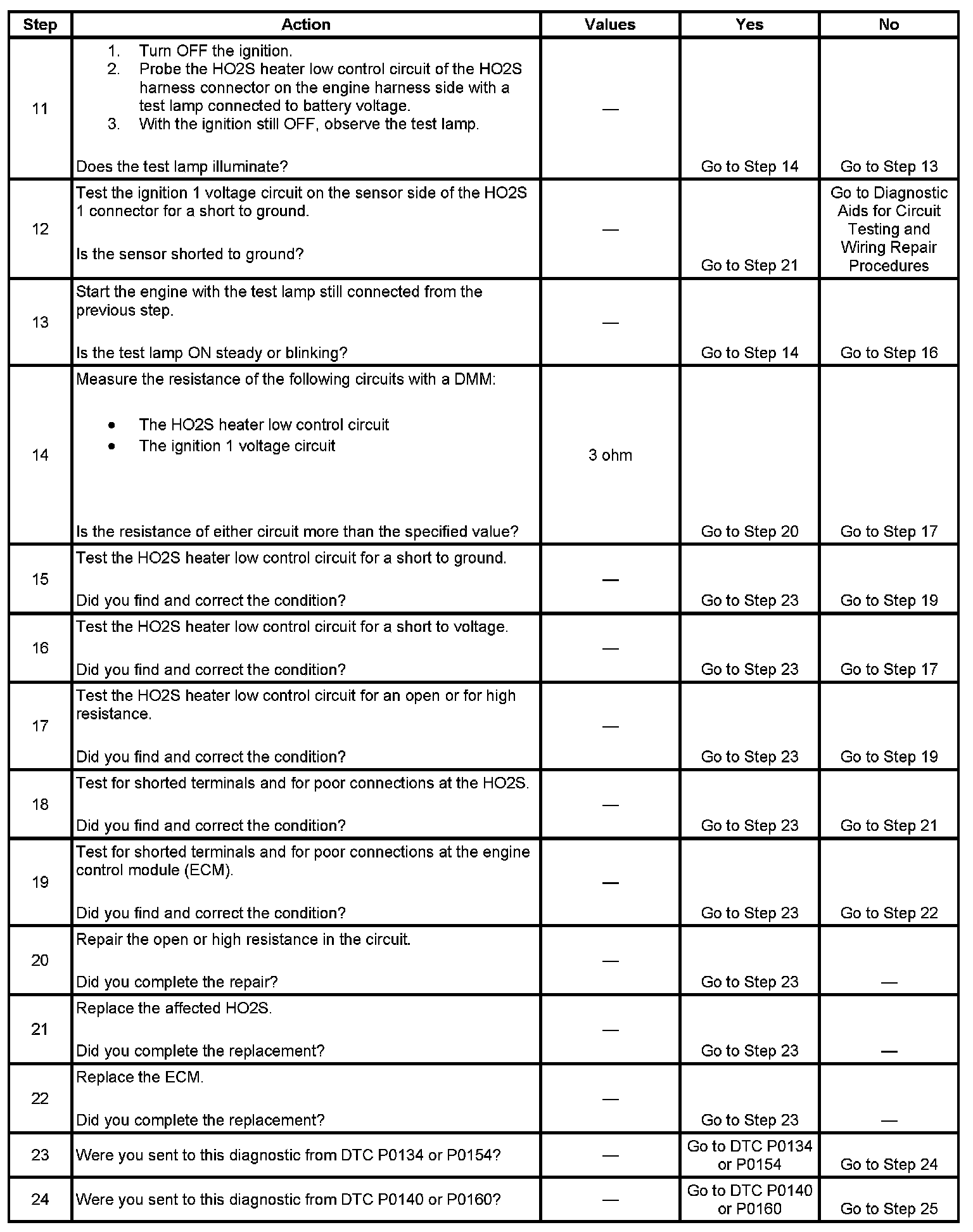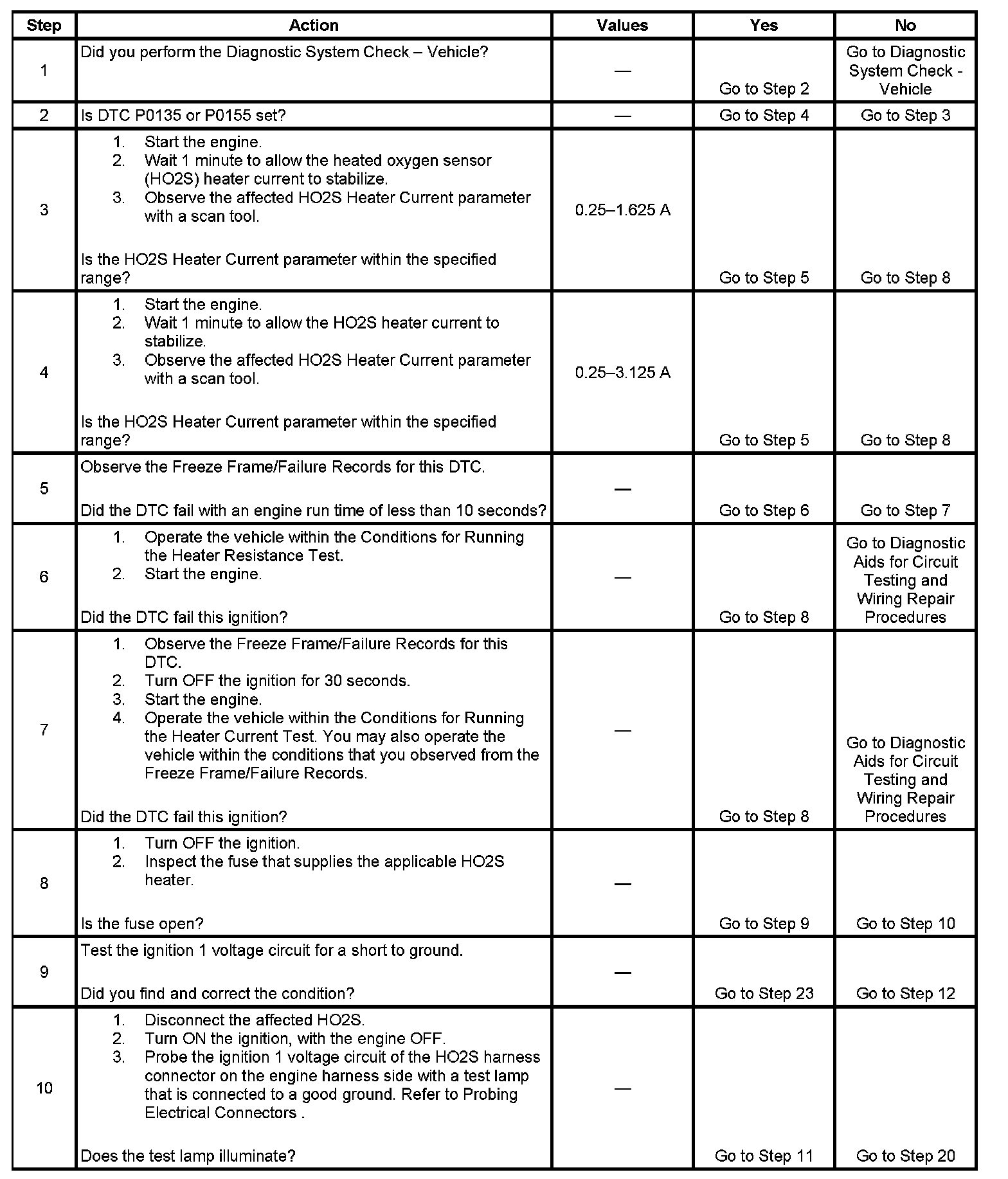 - The ECM detects that the affected HO2S Heater Current parameter is more than 3.125 amps or less than 0.25 amps.