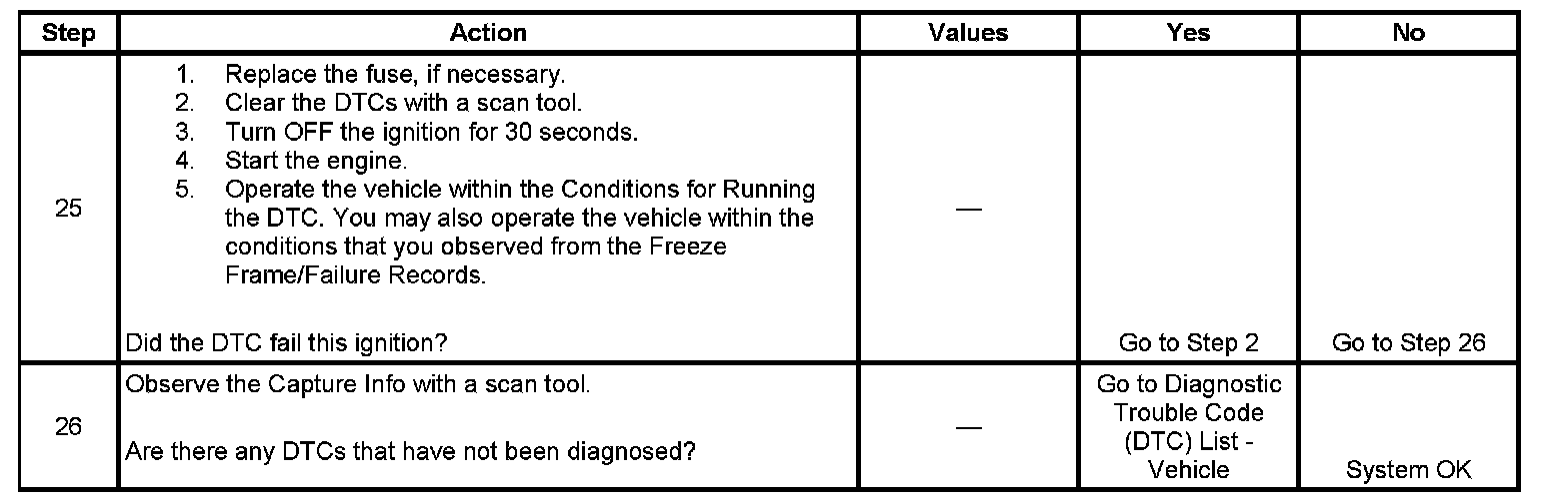 - A current DTC, Last Test Failed, clears when the diagnostic runs and passes.