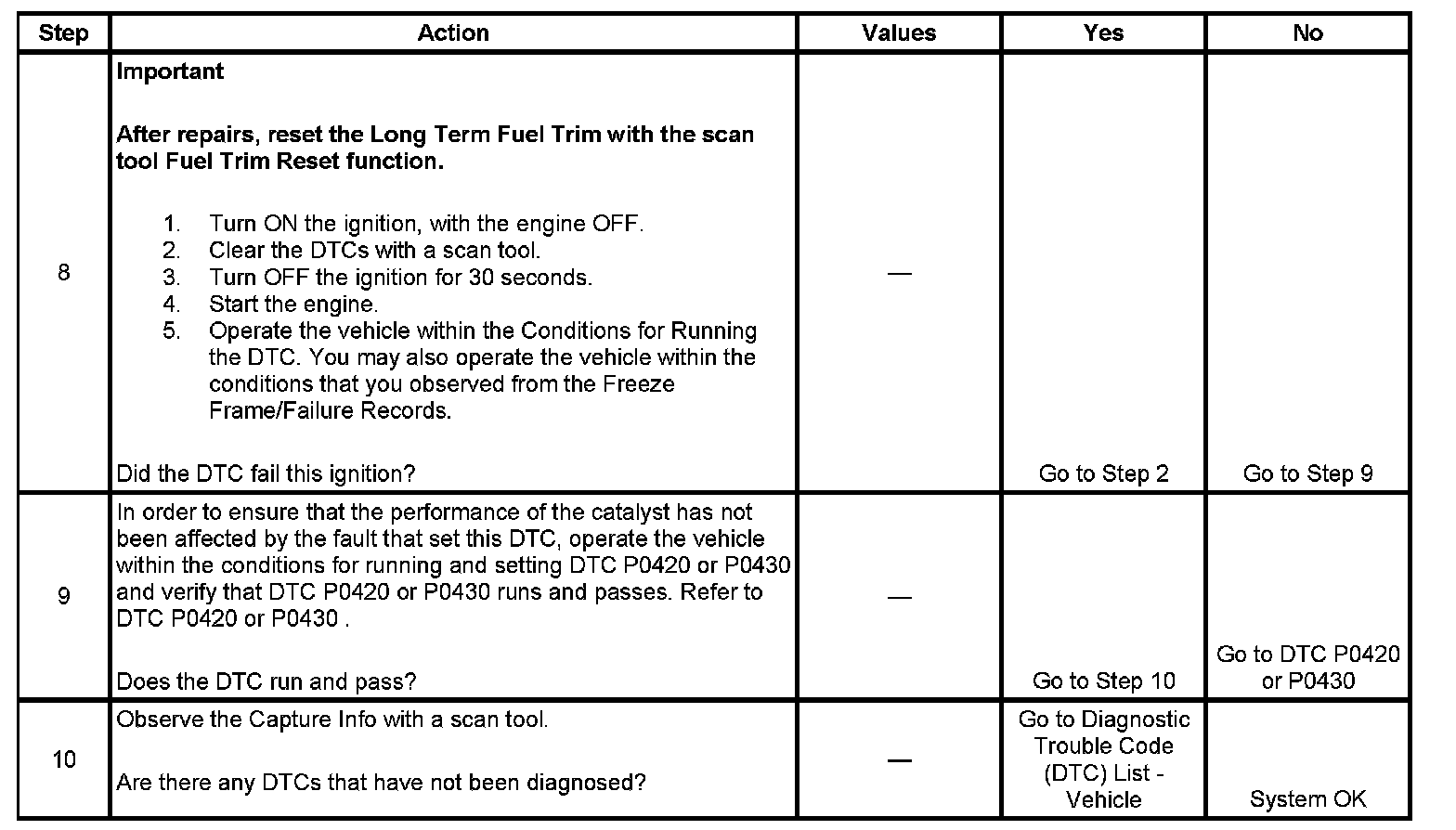 - A current DTC, Last Test Failed, clears when the diagnostic runs and passes.