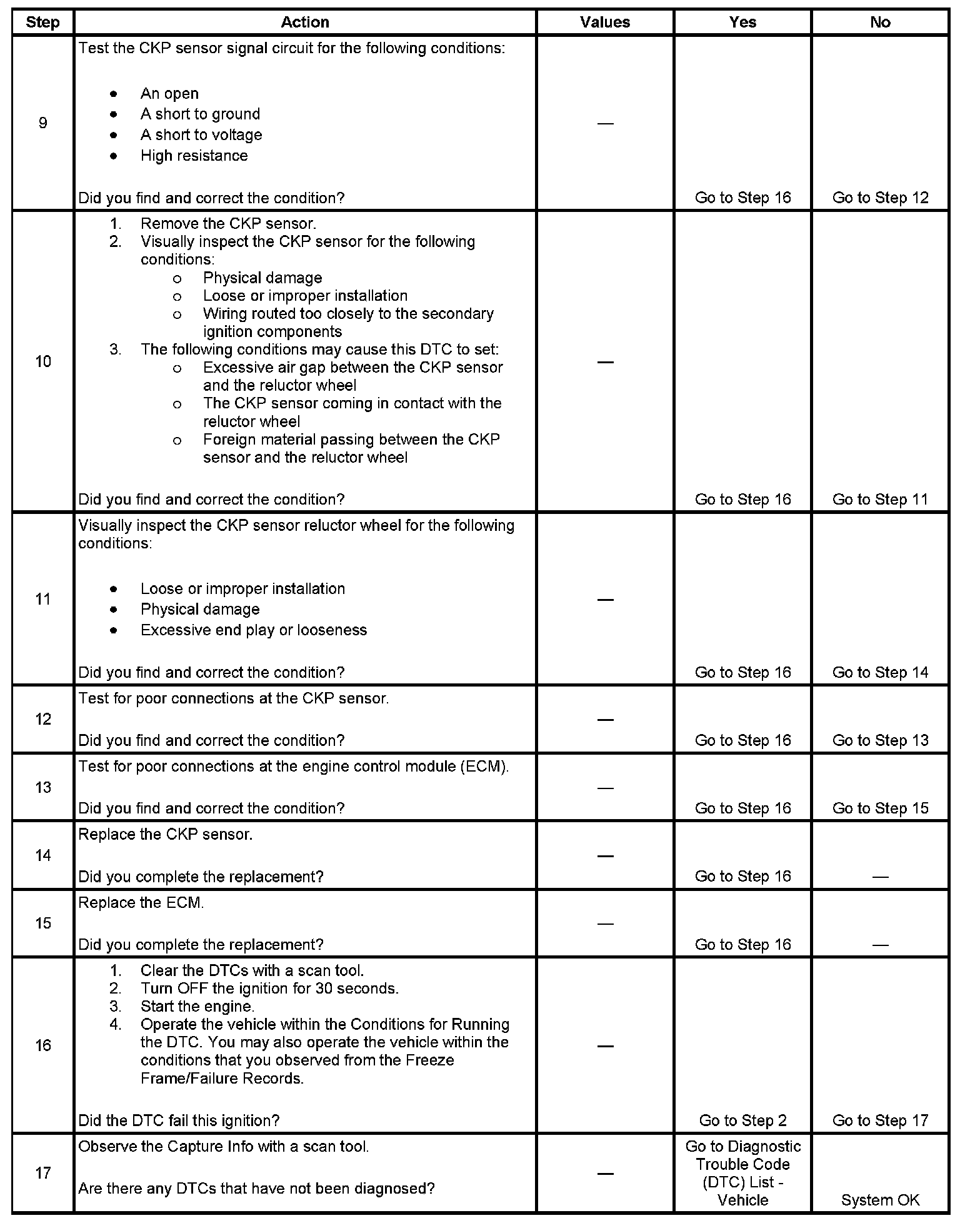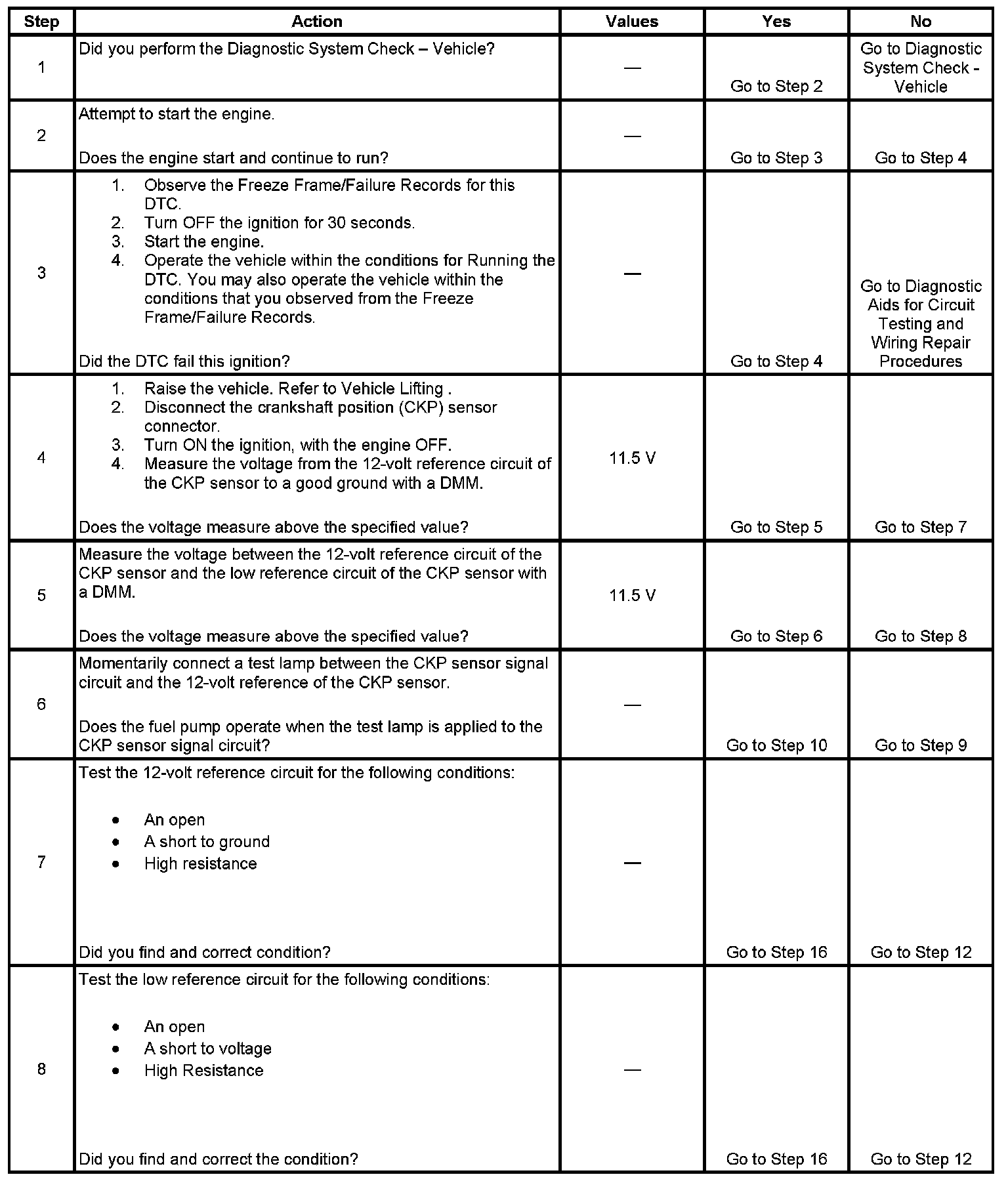 - The CKP sensor signal circuit
