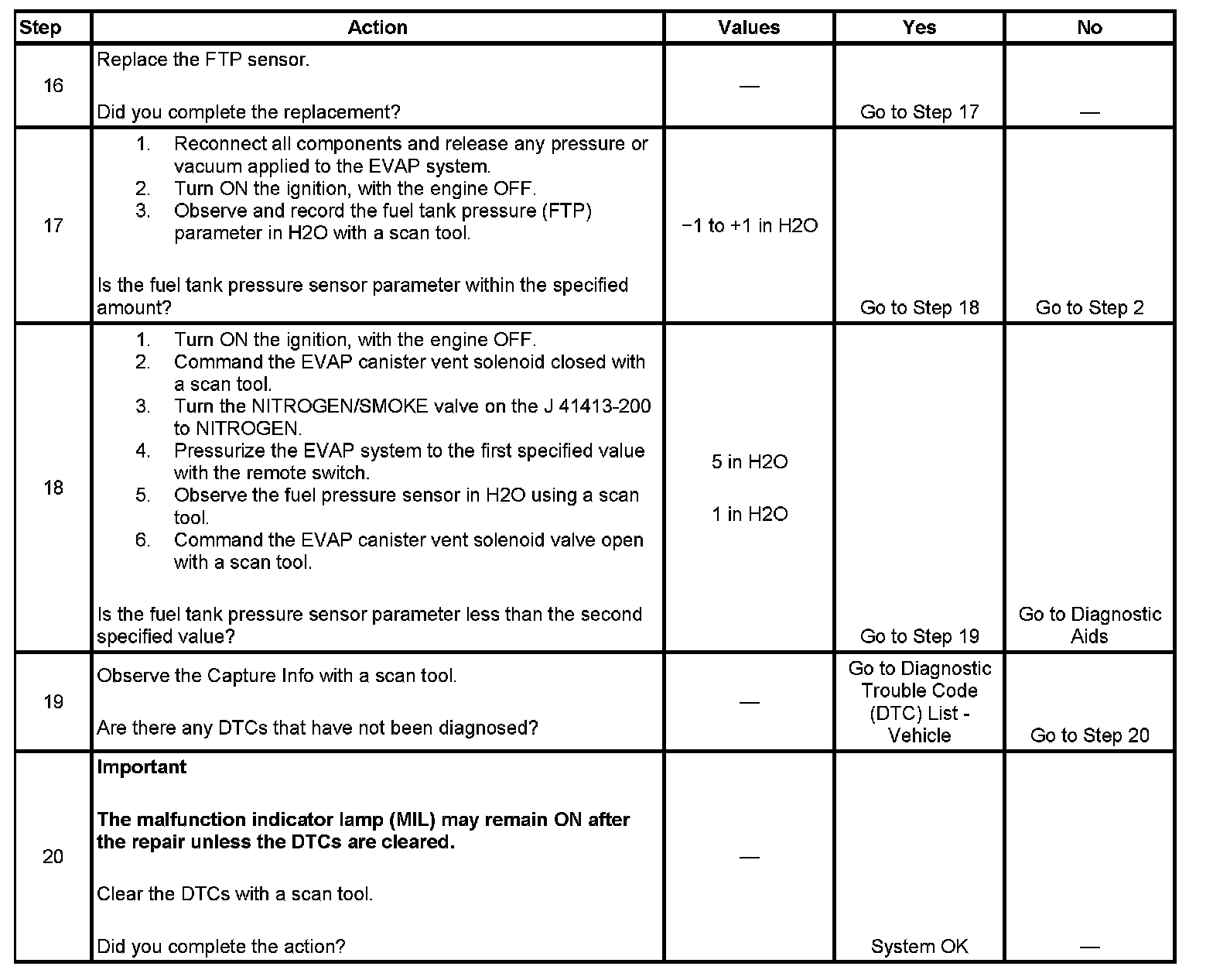 - A restriction in the EVAP canister or vent lines could prevent fuel vapor pressure from bleeding off fast enough. If the vent system cannot bleed off pressure fast enough, this code can set. When pressure is applied to the system and released, a properly operating system will return to the atmospheric pressure rapidly. By using a scan tool and the J 41413-200 pressure can be applied to the system, then released, while monitoring the FTP sensor parameter to see that pressure can be released within 30 seconds.