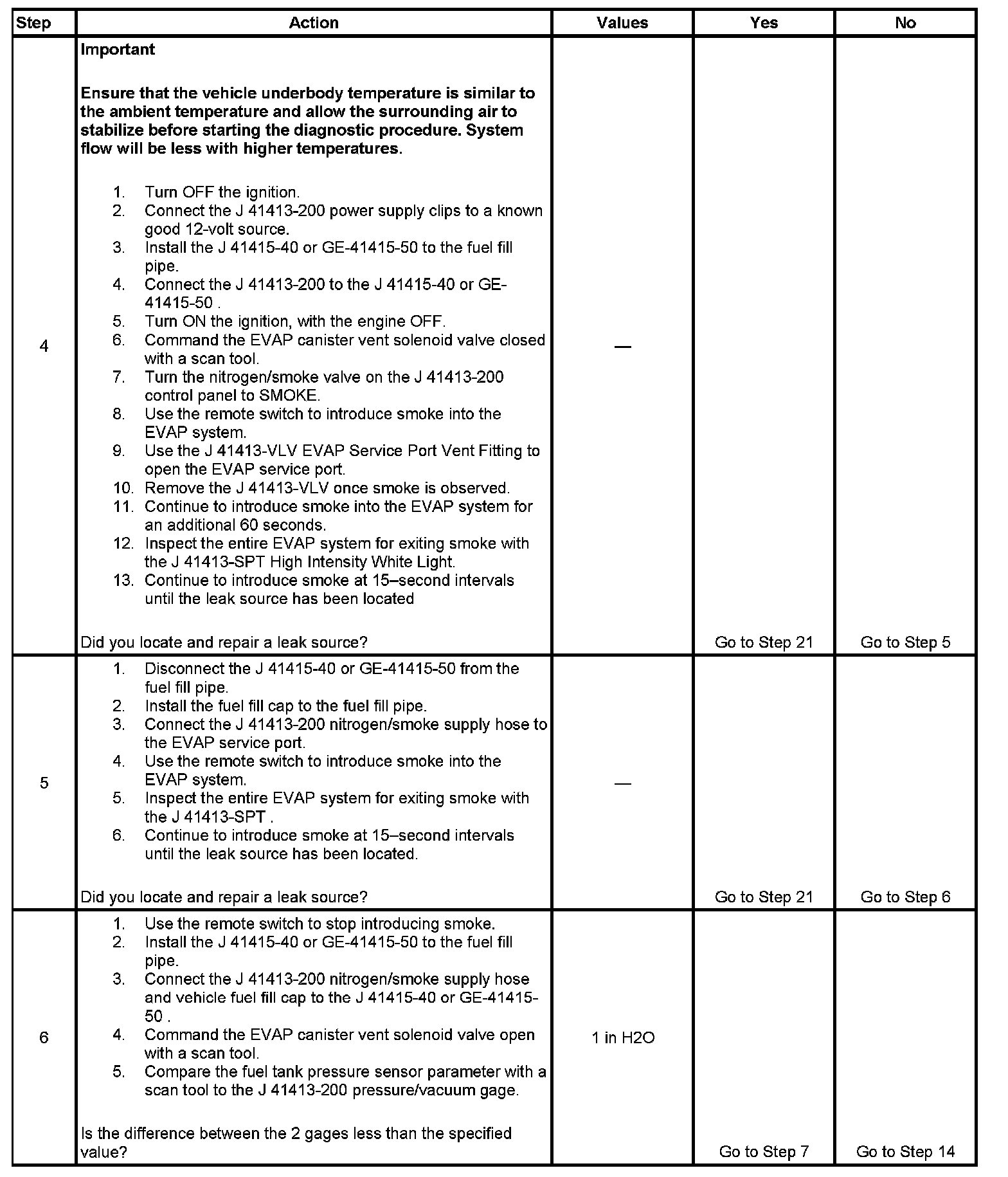 - To help locate intermittent leaks, use the J 41413-200 Evaporative Emissions System Tester (EEST) to introduce smoke into the EVAP system. Move all EVAP components while observing smoke with the J 41413-SPT High Intensity White Light. Introducing smoke in 15-second intervals will allow less pressure into the EVAP system. When the system is less pressurized, the smoke will sometimes escape in a more condensed manner.
