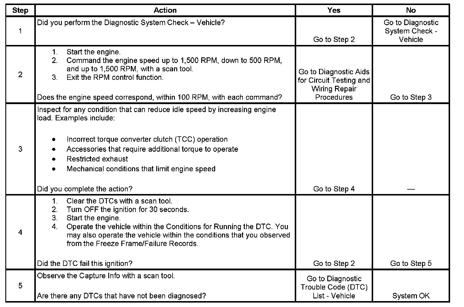 - The actual idle speed is approximately 100 RPM lower than the desired idle speed.