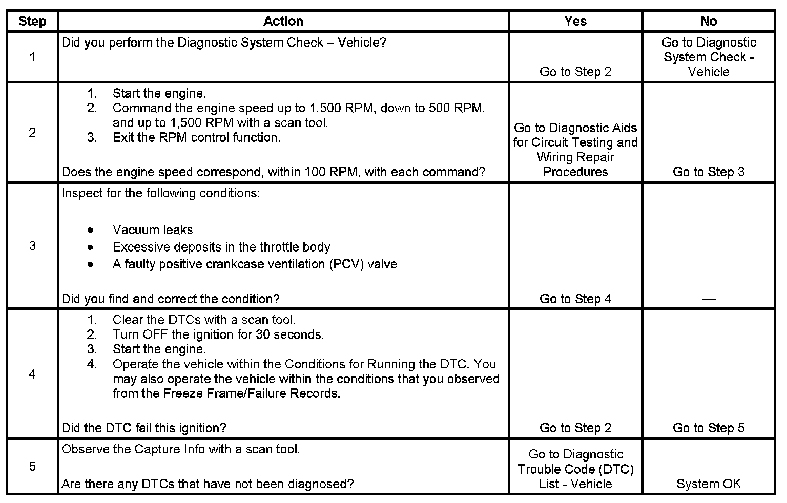 2. This test determines whether the engine can achieve the commanded RPM. If the engine does not reach the commanded RPMs, the test determines whether the RPM is too high or too low.