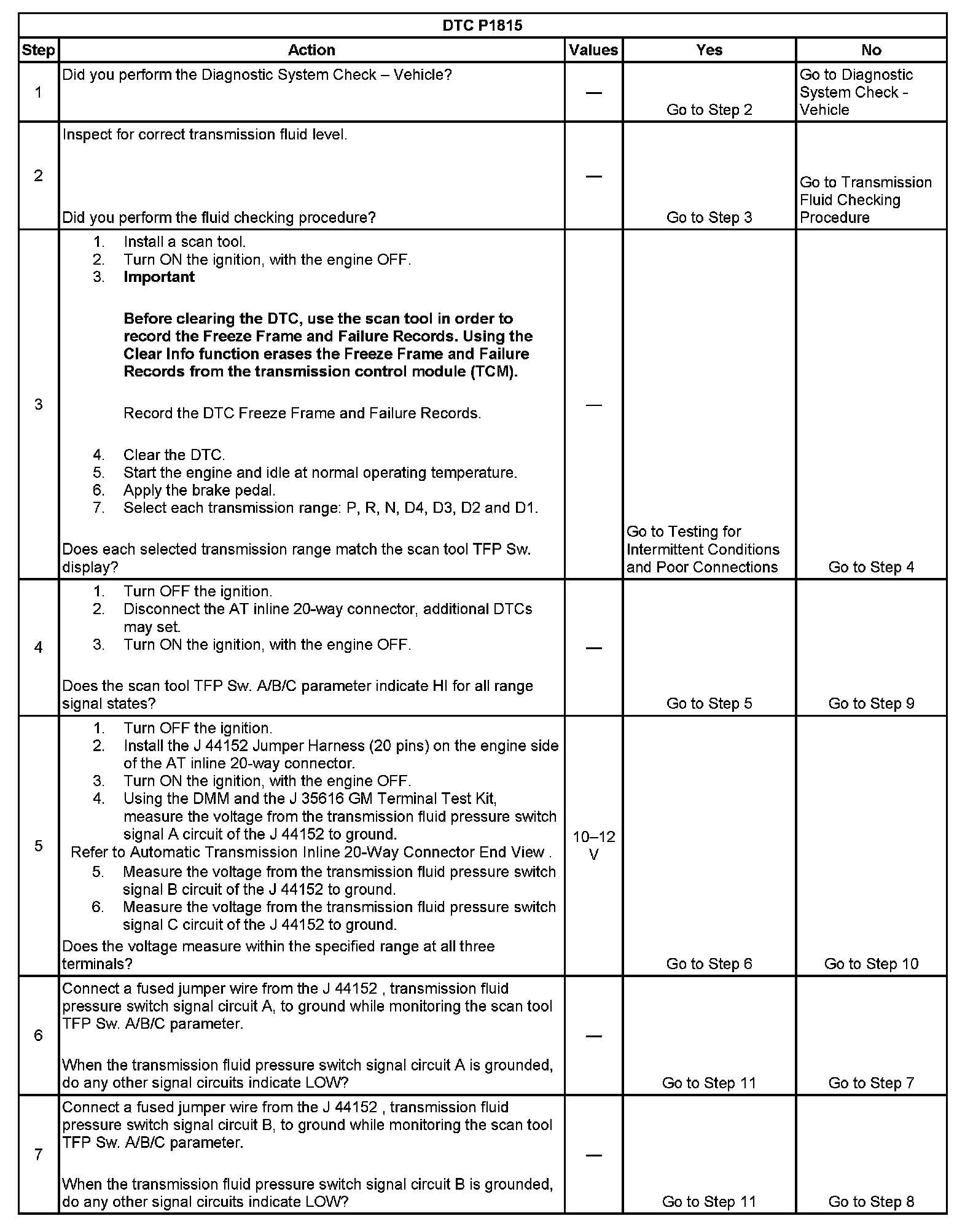 ^ No TFP DTCs P1810, P1815.