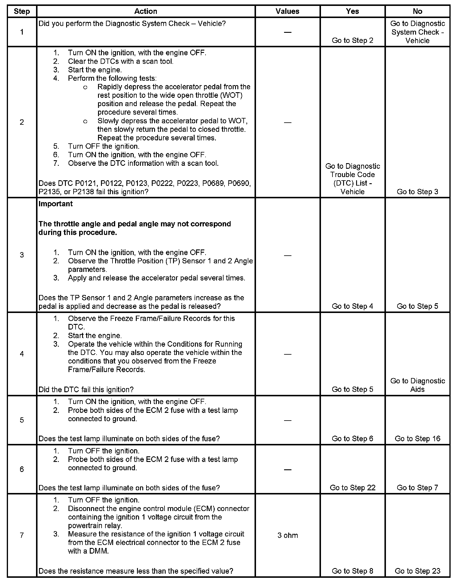 - DTCs P0120, P0122, P0123, P0220, P0222, P0223 are not set.