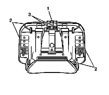 1. Remove the two screws (3) securing the seat pull handle (1) to the seat panel.