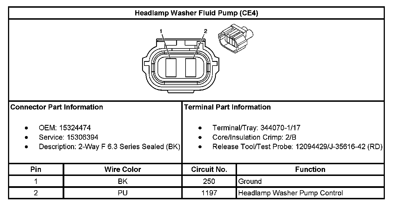 Headlamp Washer Fluid Pump (With RPO Code CE4):