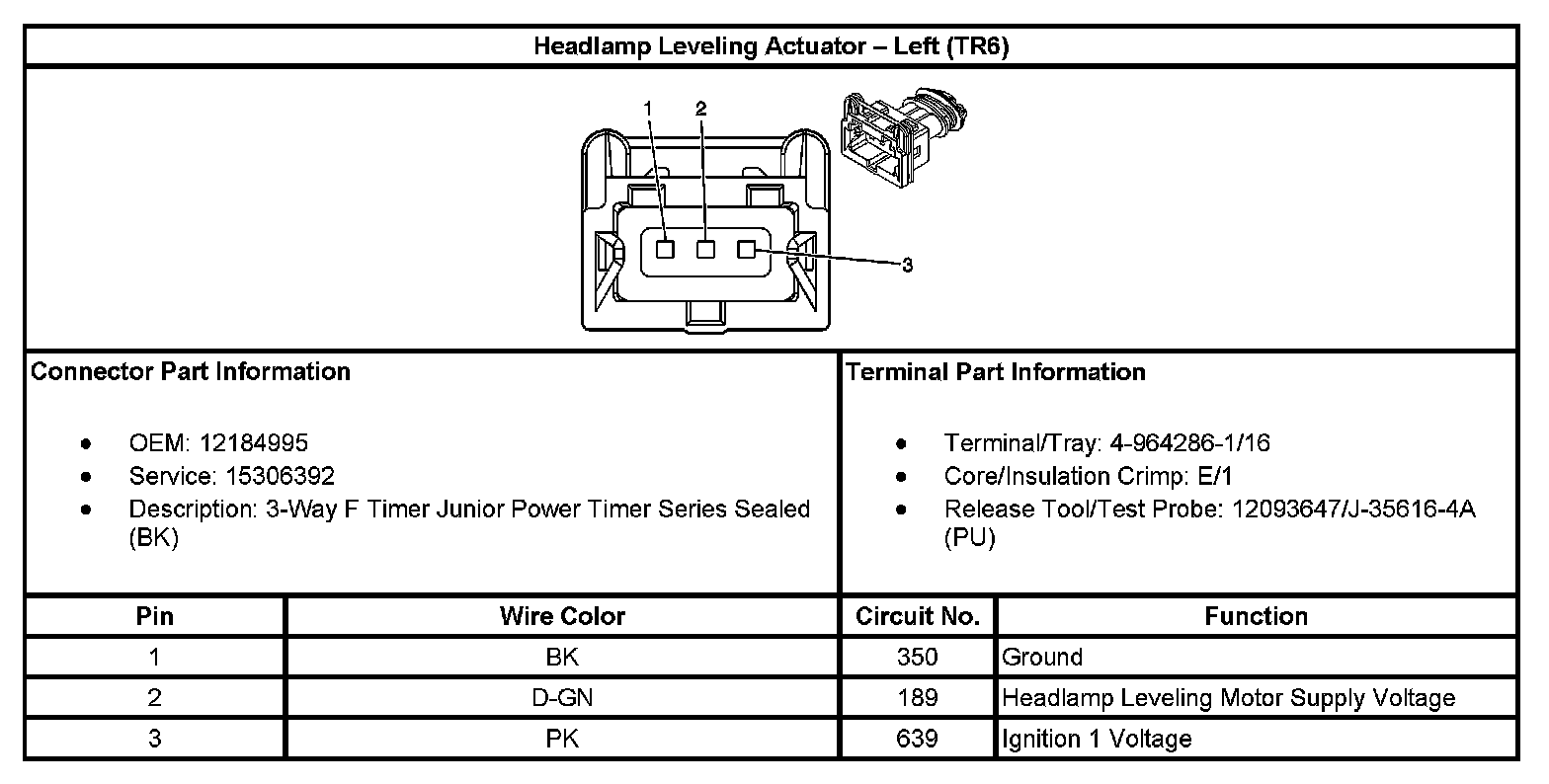 Headlamp Leveling Actuator - Left (With RPO Code TR6):