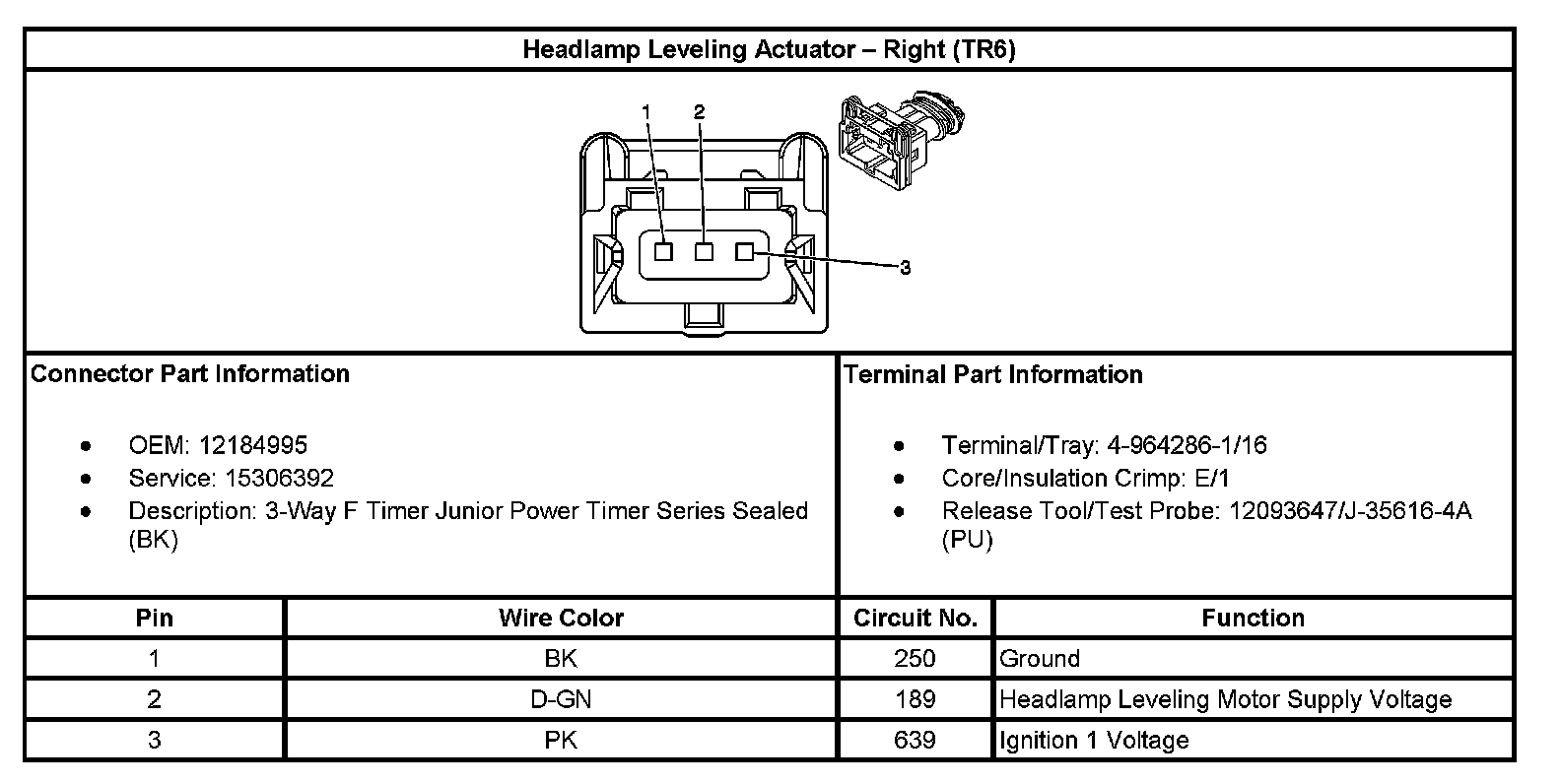Headlamp Leveling Actuator - Right (With RPO Code TR6):