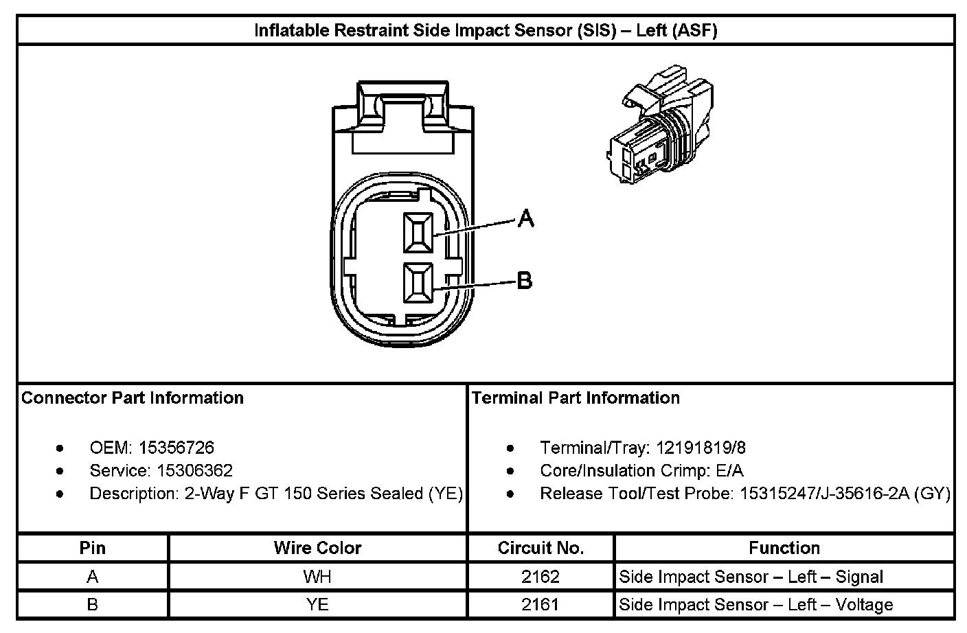 Inflatable Restraint Side Impact Sensor (SIS) - Left (With RPO Code ASF):