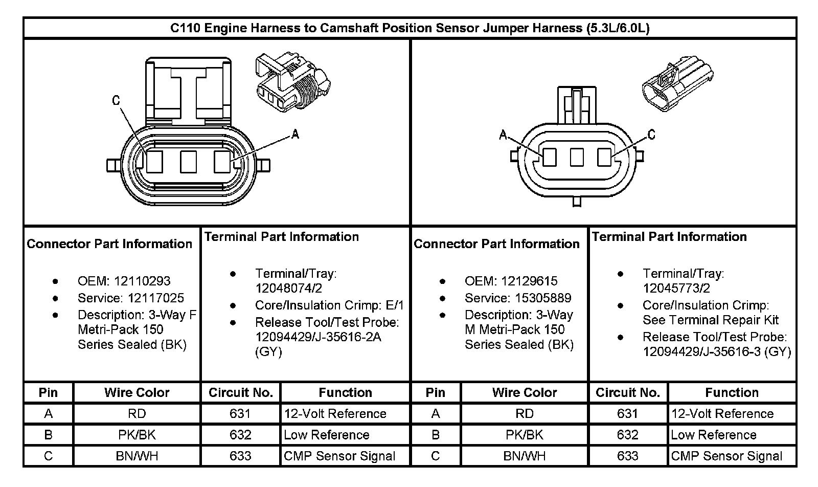 C110 Engine Harness To Camshaft Position Sensor Jumper Harness: