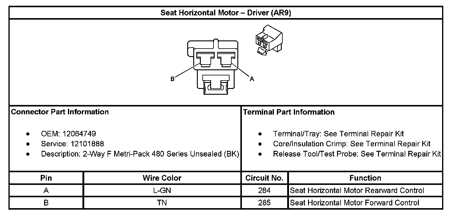Seat Horizontal Motor - Driver (With RPO Code AR9):