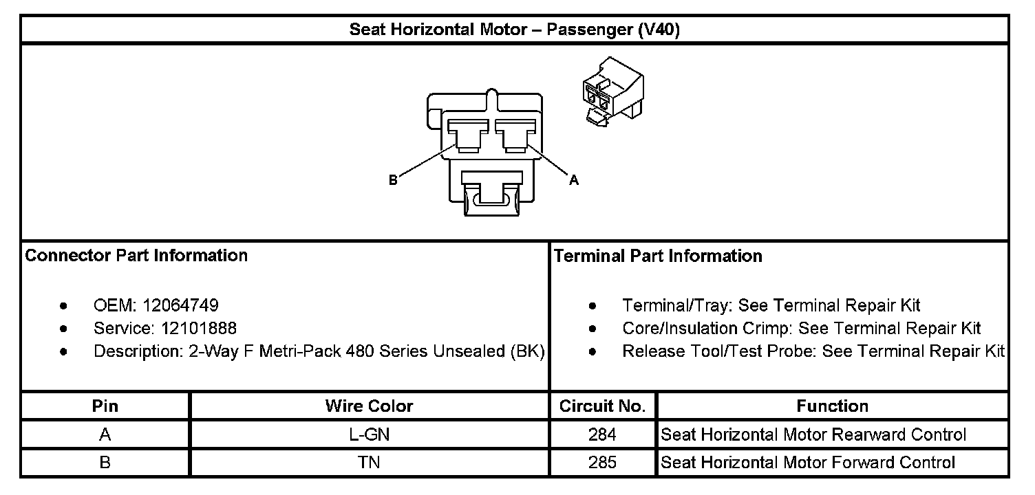 Seat Horizontal Motor - Passenger (With RPO Code V40):