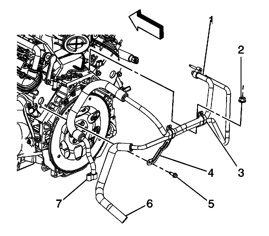 12. Disconnect the rear auxiliary A/C compressor pipe fitting (7).