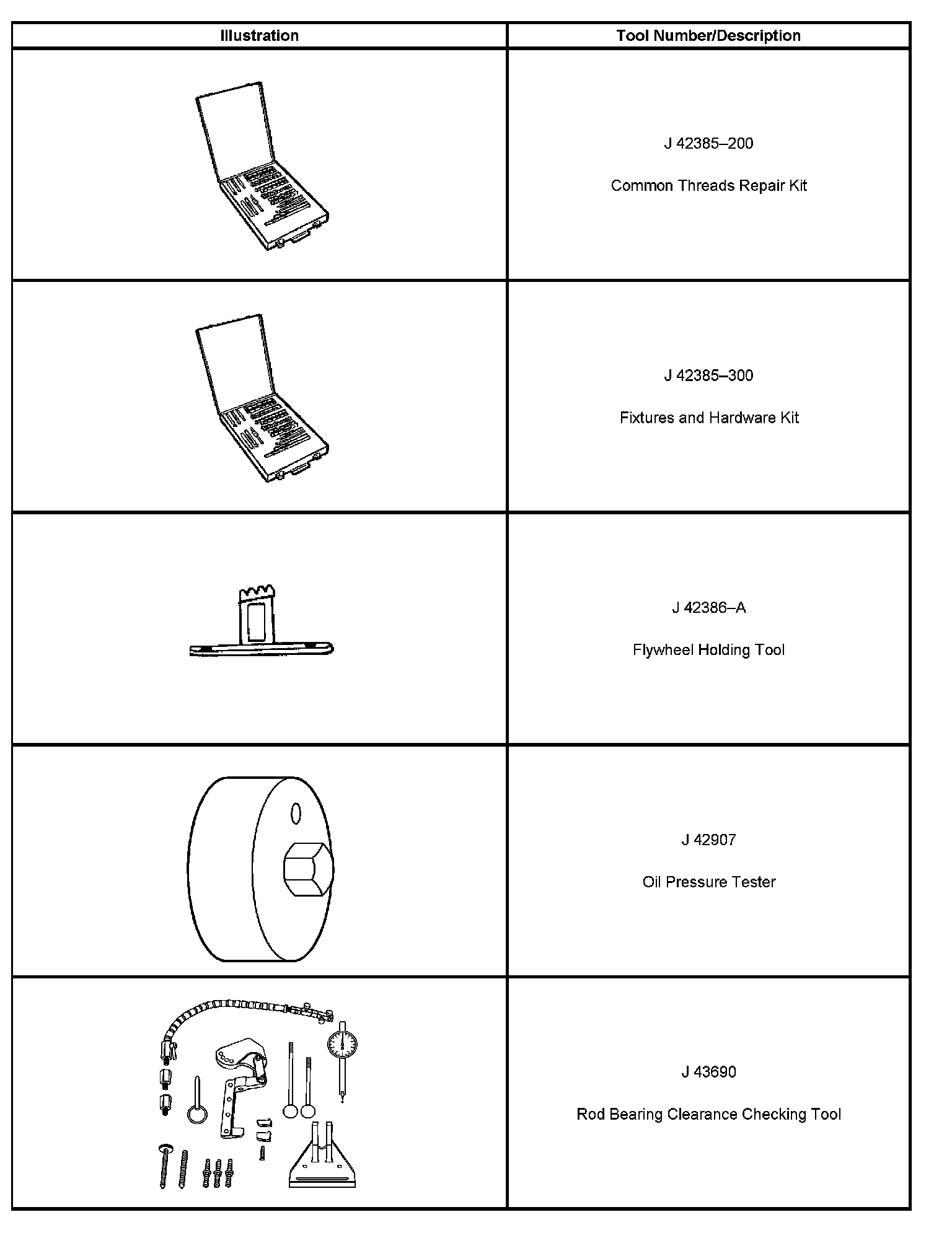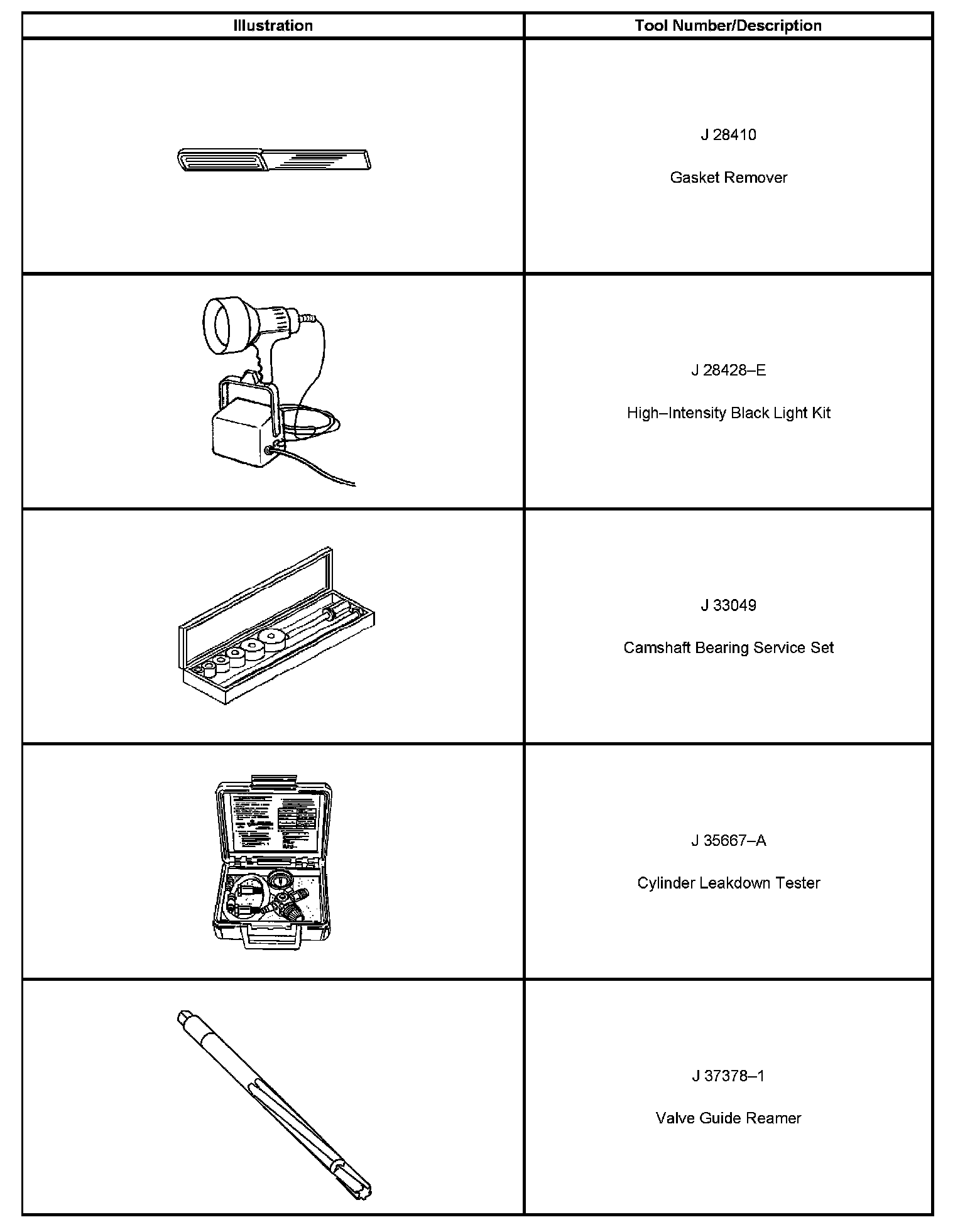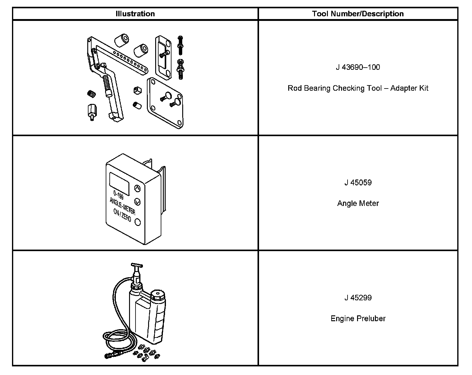 Special tools are listed and illustrated throughout this section, with a complete listing at the end of the section. These tools, or their equivalents, are specially designed to quickly and safely accomplish the operations for which they are intended. The use of these special tools also minimize possible damage to engine components. Some precision measuring tools are required for inspection of certain critical components. Torque wrenches and a torque angle meter are necessary for the proper tightening of various fasteners.