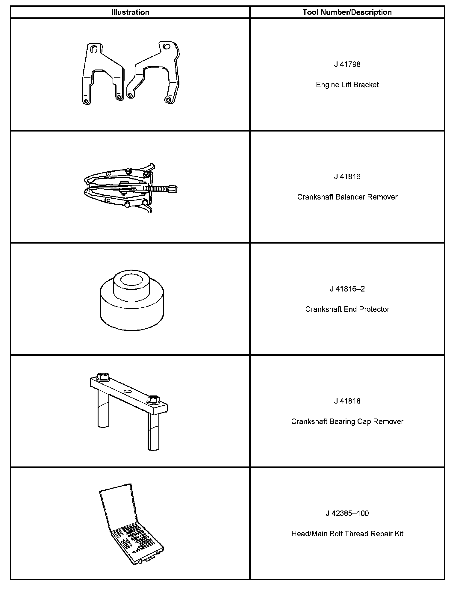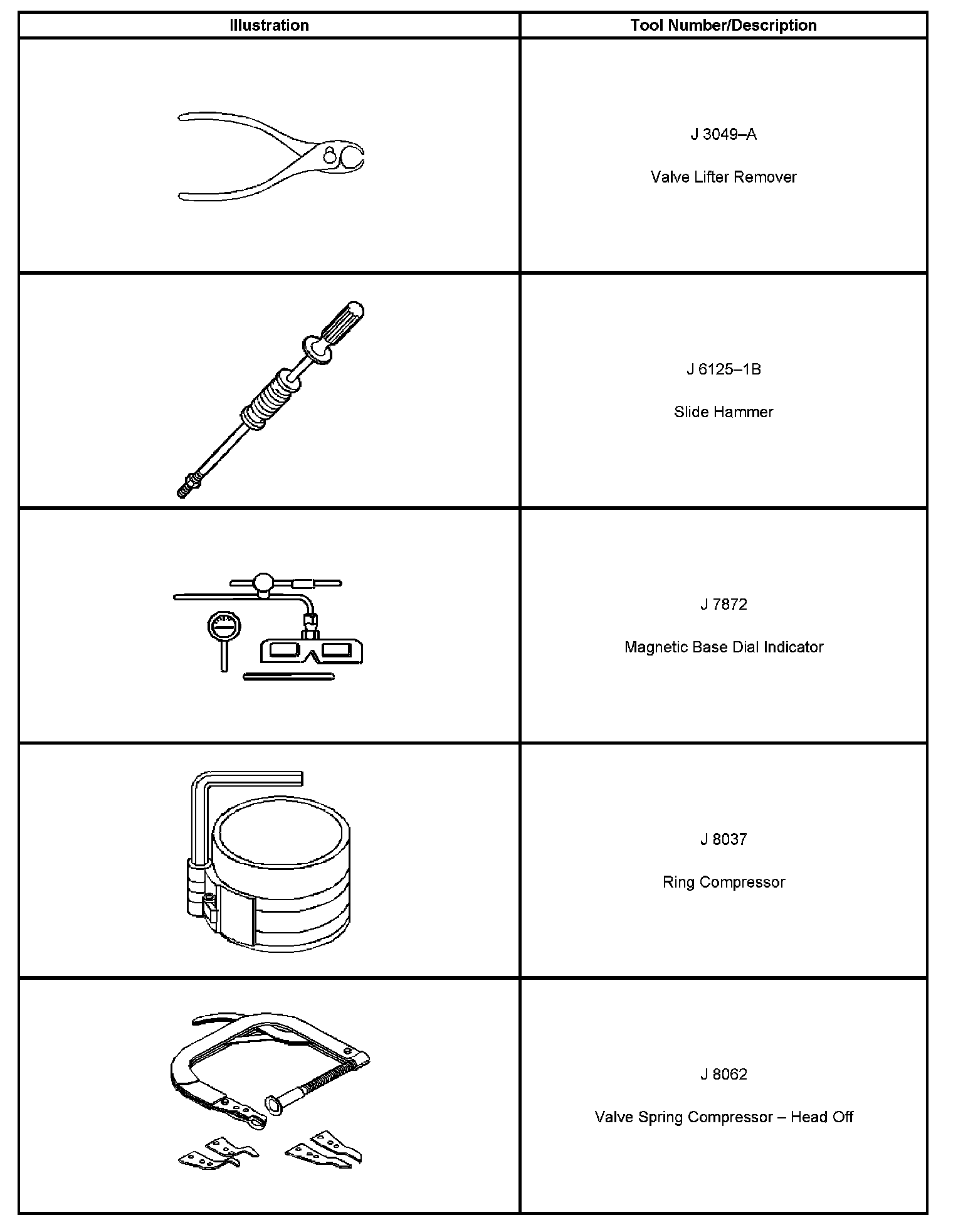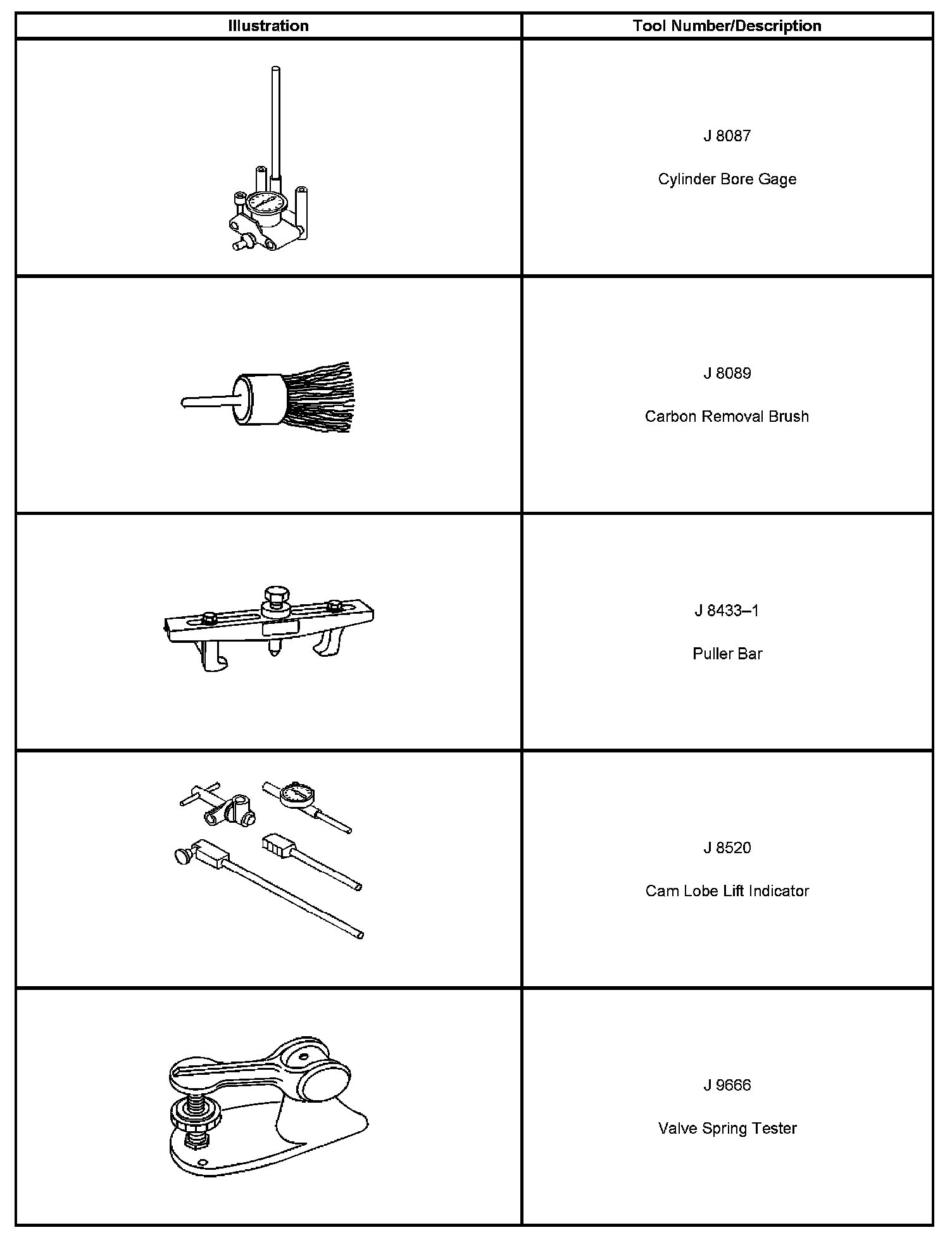 Special tools are listed and illustrated throughout this section, with a complete listing at the end of the section. These tools, or their equivalents, are specially designed to quickly and safely accomplish the operations for which they are intended. The use of these special tools also minimize possible damage to engine components. Some precision measuring tools are required for inspection of certain critical components. Torque wrenches and a torque angle meter are necessary for the proper tightening of various fasteners.