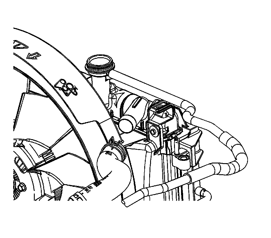 3. Using J 38185 reposition the radiator inlet hose clamp (1) from the engine.