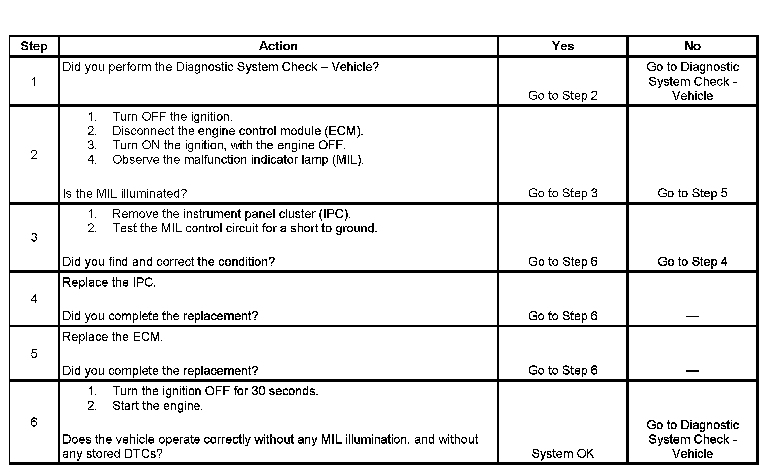 2. This step determines if the condition is with the MIL control circuit or the ECM.