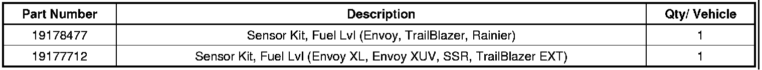 On some 2005 model year GMC Envoy XUV; 2005-2006 model year Chevrolet SSR, TrailBlazer EXT, GMC Envoy XL; 2005-2007 model year Buick Rainier, Chevrolet TrailBlazer, and GMC Envoy vehicles, the contacts on the fuel level sensor may wear prematurely. This wear could cause the fuel gauge to read empty after filling the tank and cause the malfunction indicator light (MIL) to illuminate. As the fuel level in the tank drops, the MIL may turn off and the gauge may display a reading; however, the reading may indicate a slightly higher level of fuel than what is in the tank. Eventually as the contacts continue to wear, the fuel gauge will stop working and the MIL will illuminate continuously.
