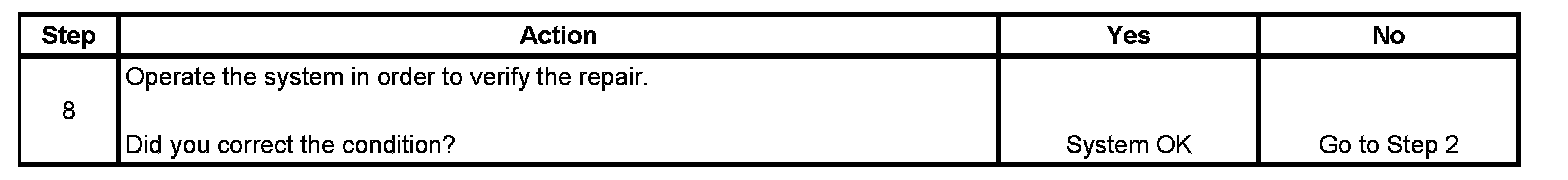 The numbers below refer to the step numbers on the diagnostic table.