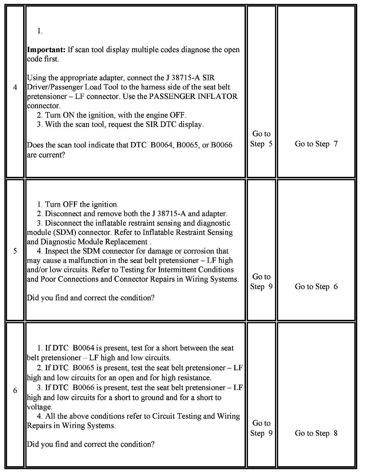 - DTC B0064 will set when the seat belt pretensioner - LF deployment loop resistance is less than 1.3 ohms for 500 milliseconds.