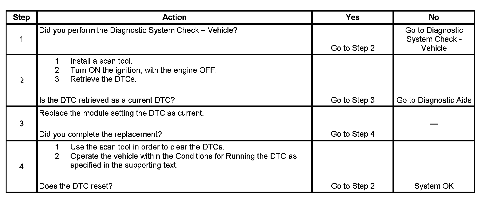 - If this DTC is retrieved as both a current and history DTC, replace the module.