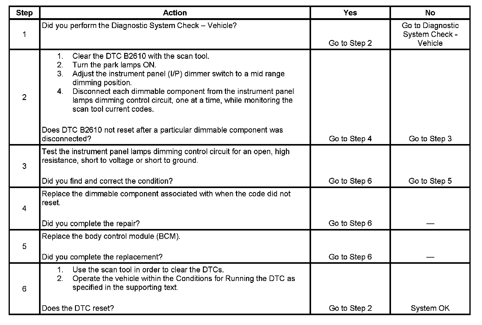 2. This step test determines by process of elimination which, if any, dimmable component is causing the DTC to set.