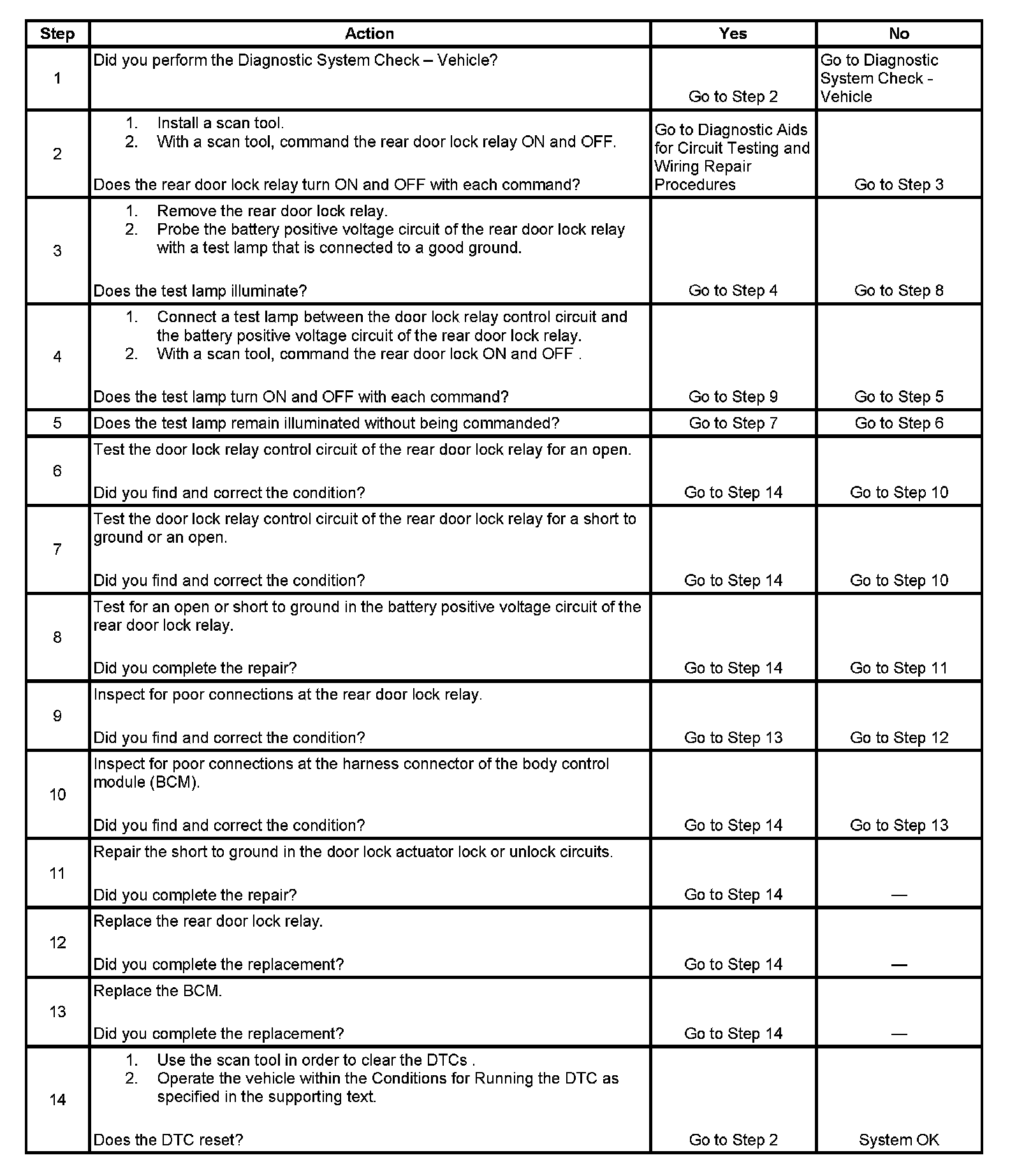 5. This step tests if ground is constantly being applied to the rear door lock relay.