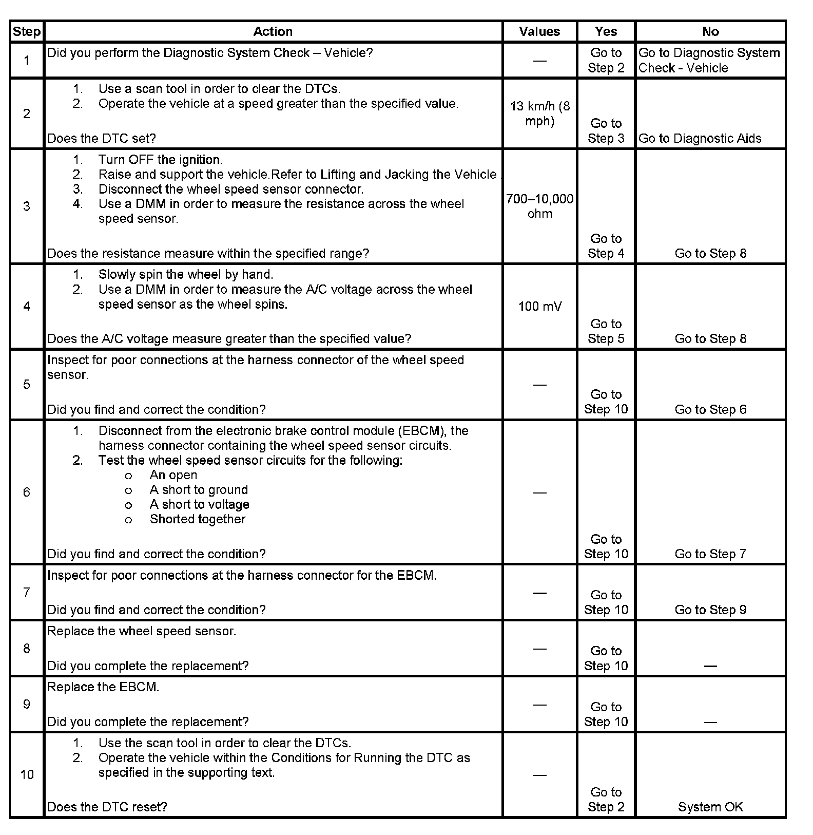 ^ The EBCM detects an open or shorted wheel speed sensor circuit for 500 milliseconds.