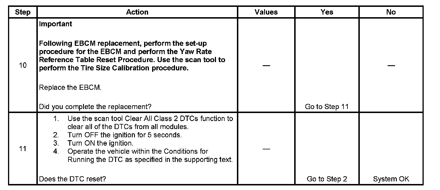 ^ The EBCM disables antilock brake system (ABS)/traction control system (TCS)/vehicle stability enhancement system (VSES) and may disable dynamic rear proportion (DRP) if more than one wheel speed sensor DTC is set.