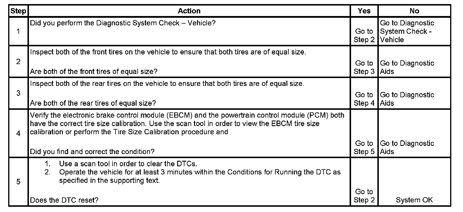 4. If the front tires are not the same size as the rear tires, the EBCM calibration must match the FRONT tire size and the PCM calibration must match the REAR tire size.