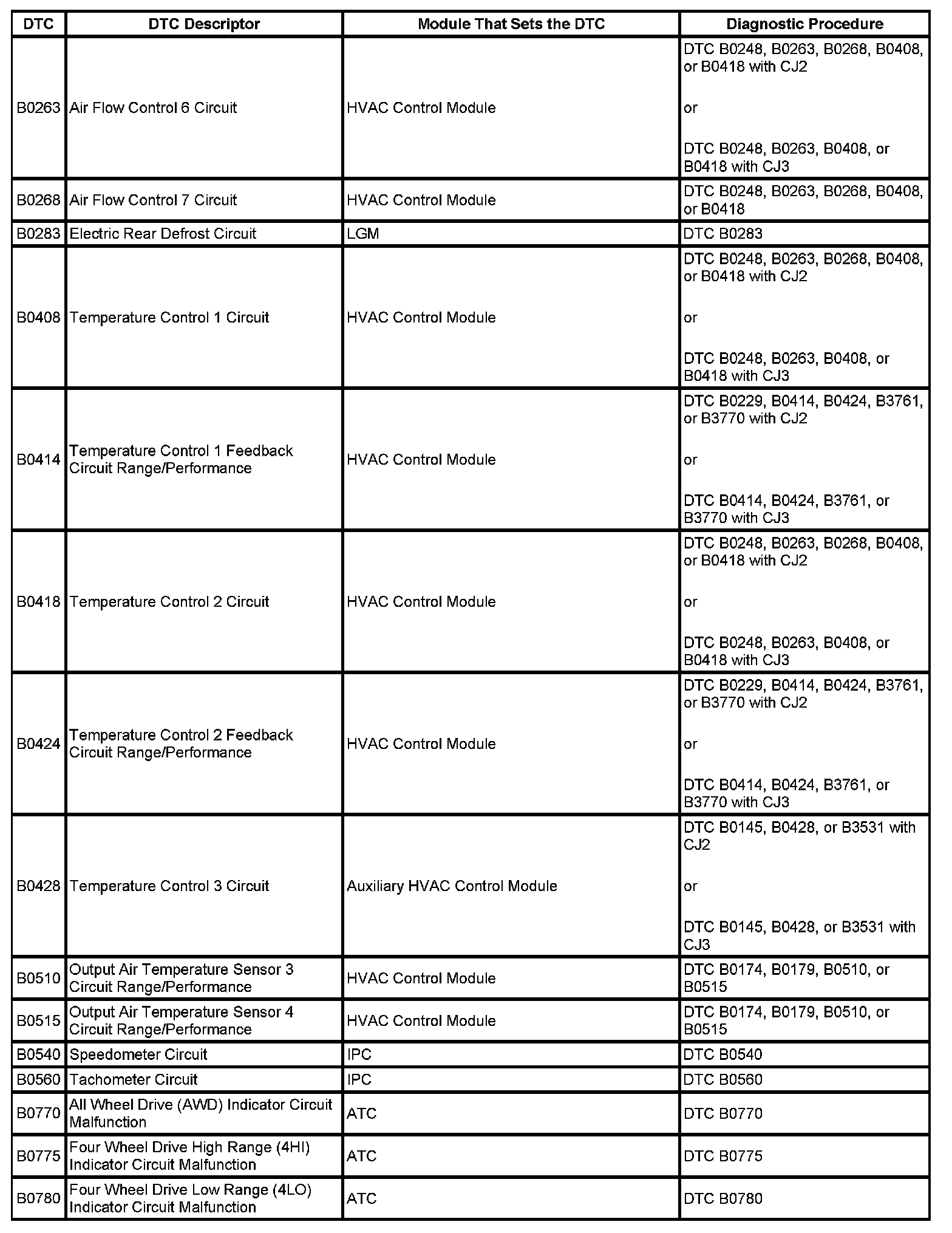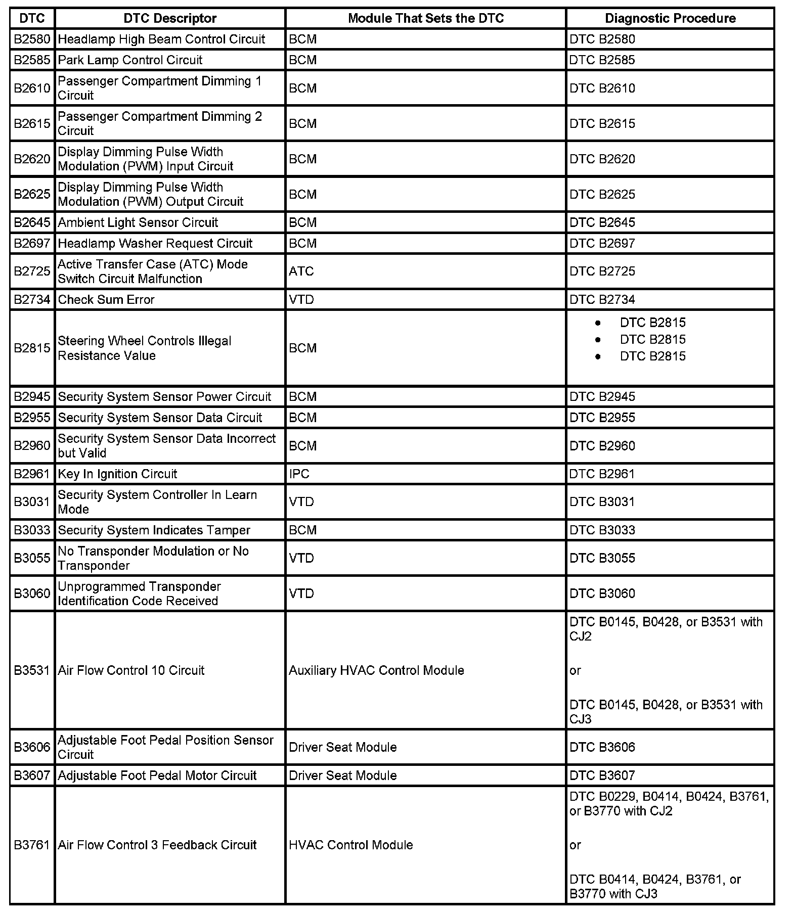 DTCs B2580 - B3761: