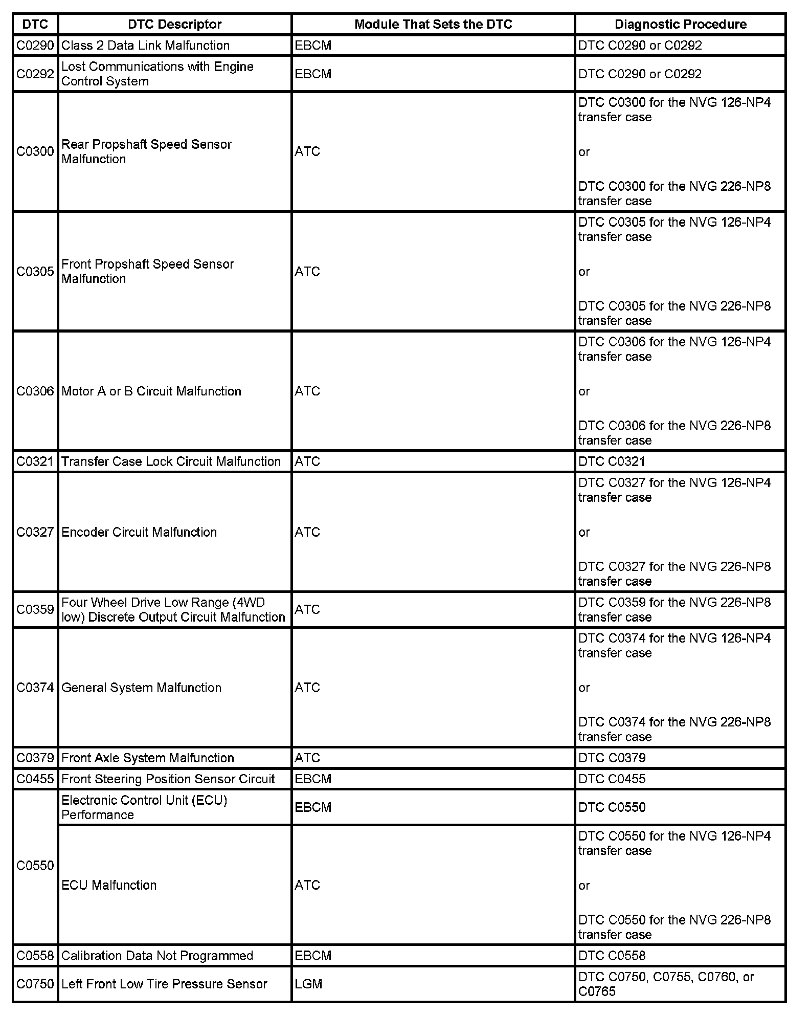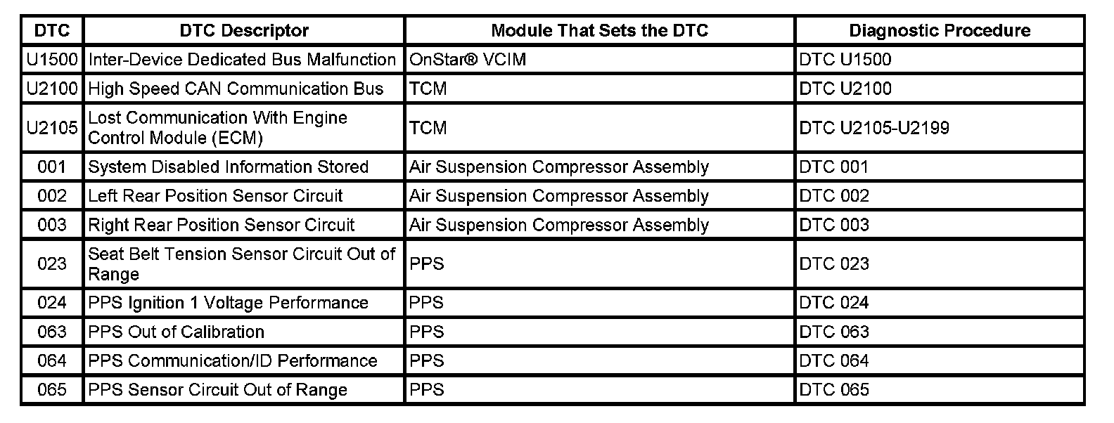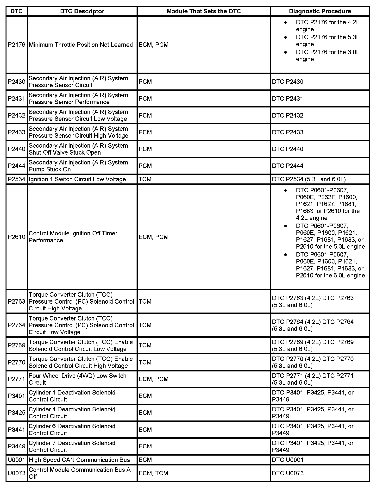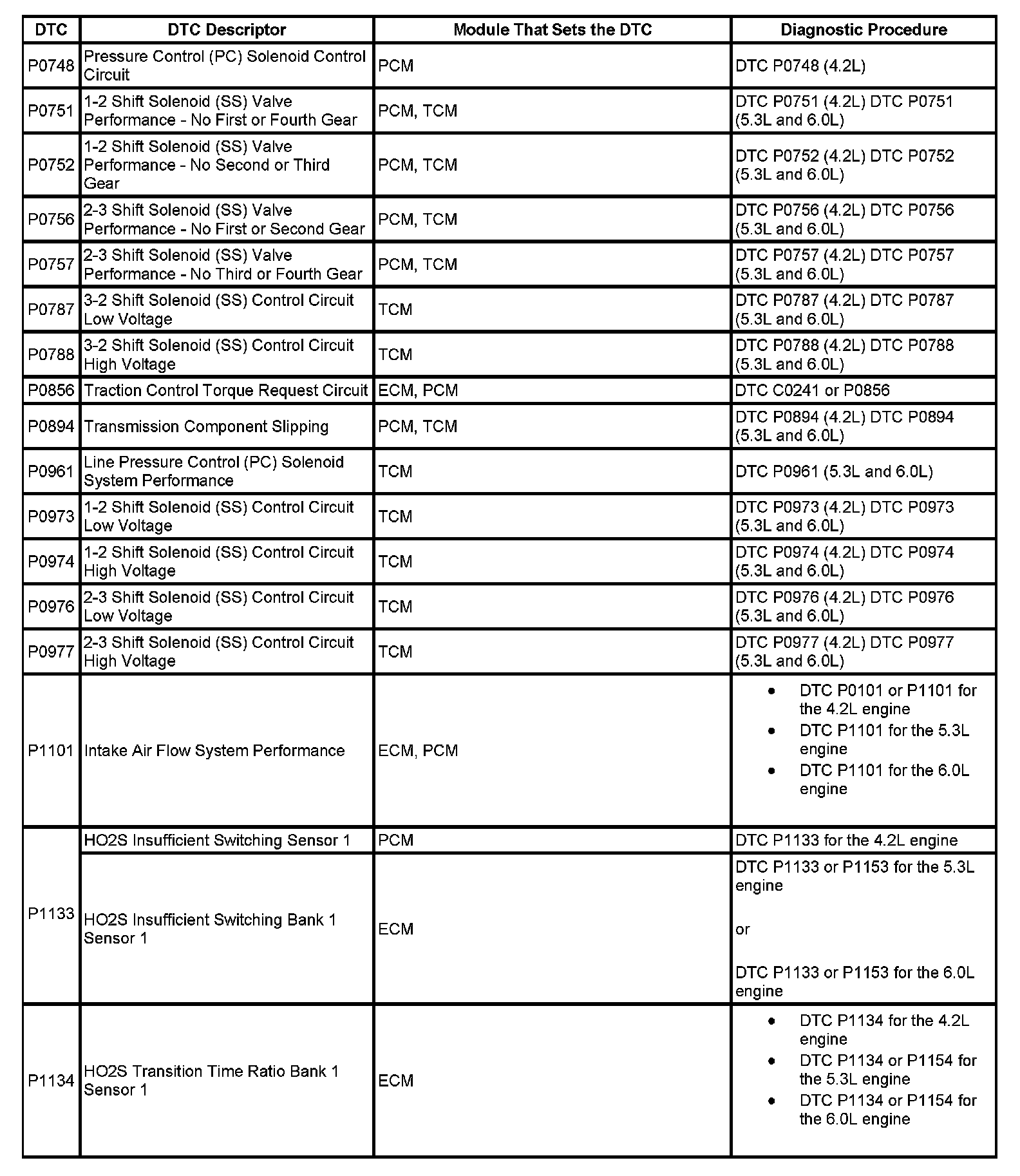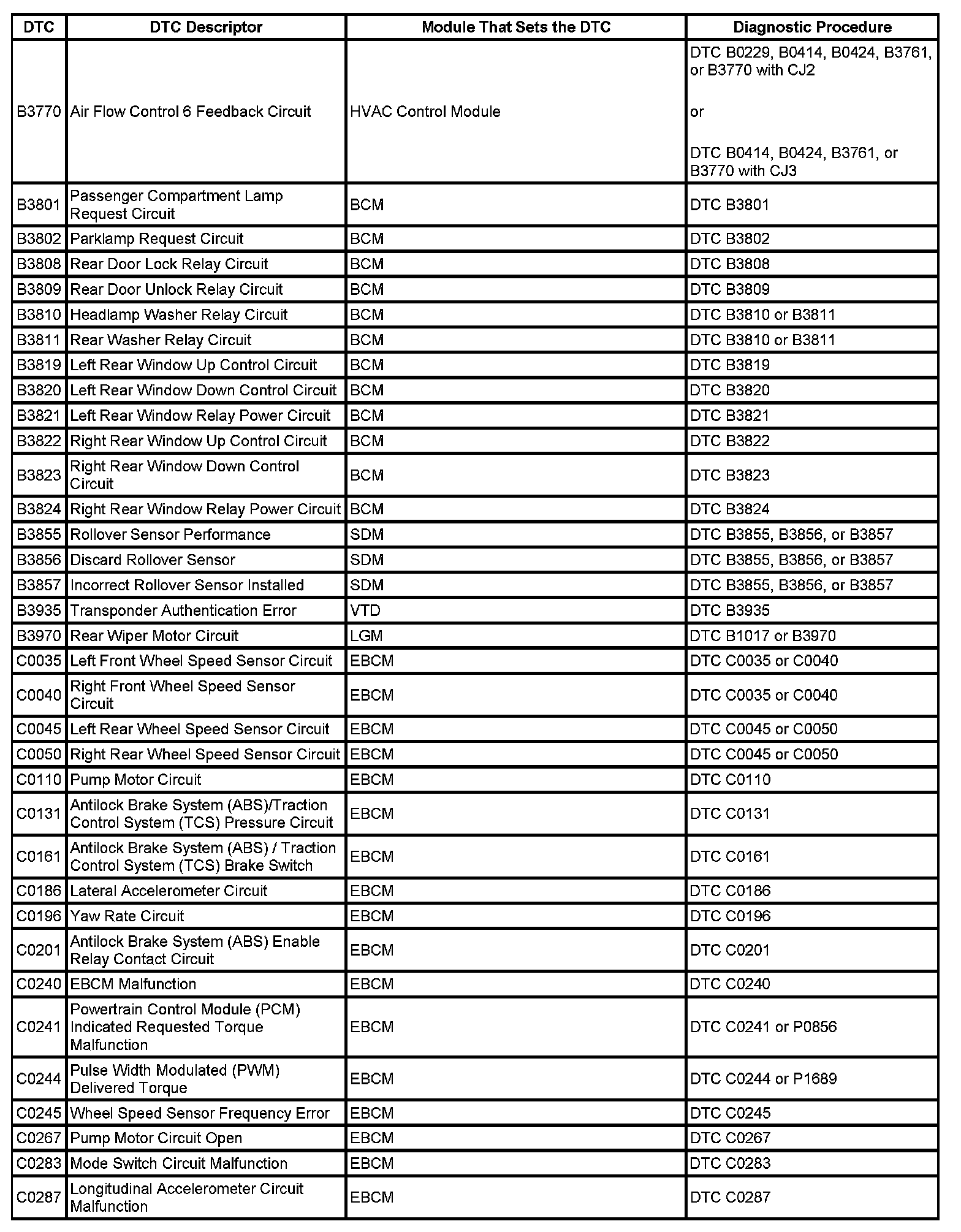 This master DTC list includes all applicable DTCs in alphanumeric order with descriptors.