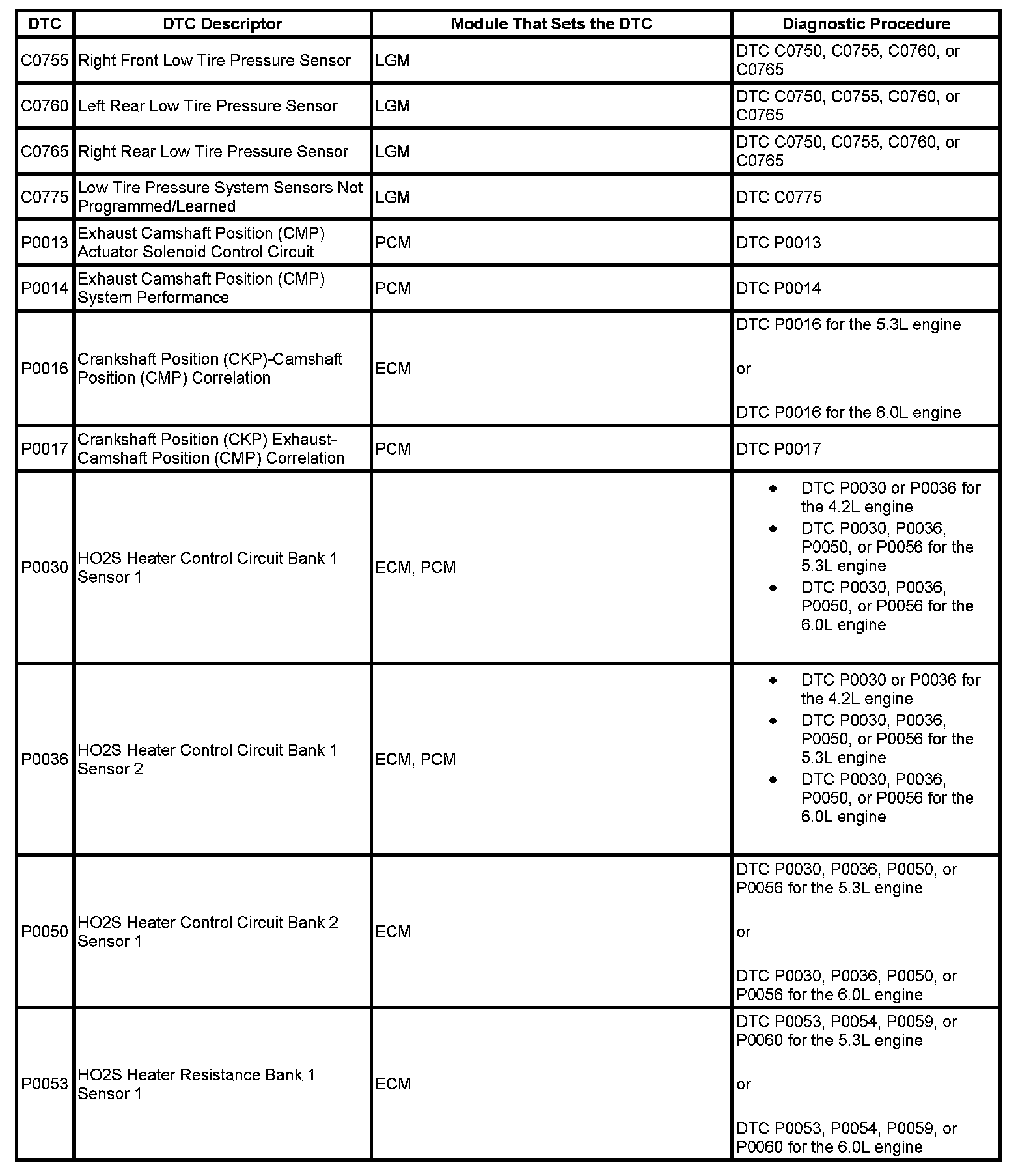 The GMLAN modules on this vehicle also support DTC Symptom information. Refer to DTC Symptom Description for additional information on DTC Symptoms. DTC Symptom Description