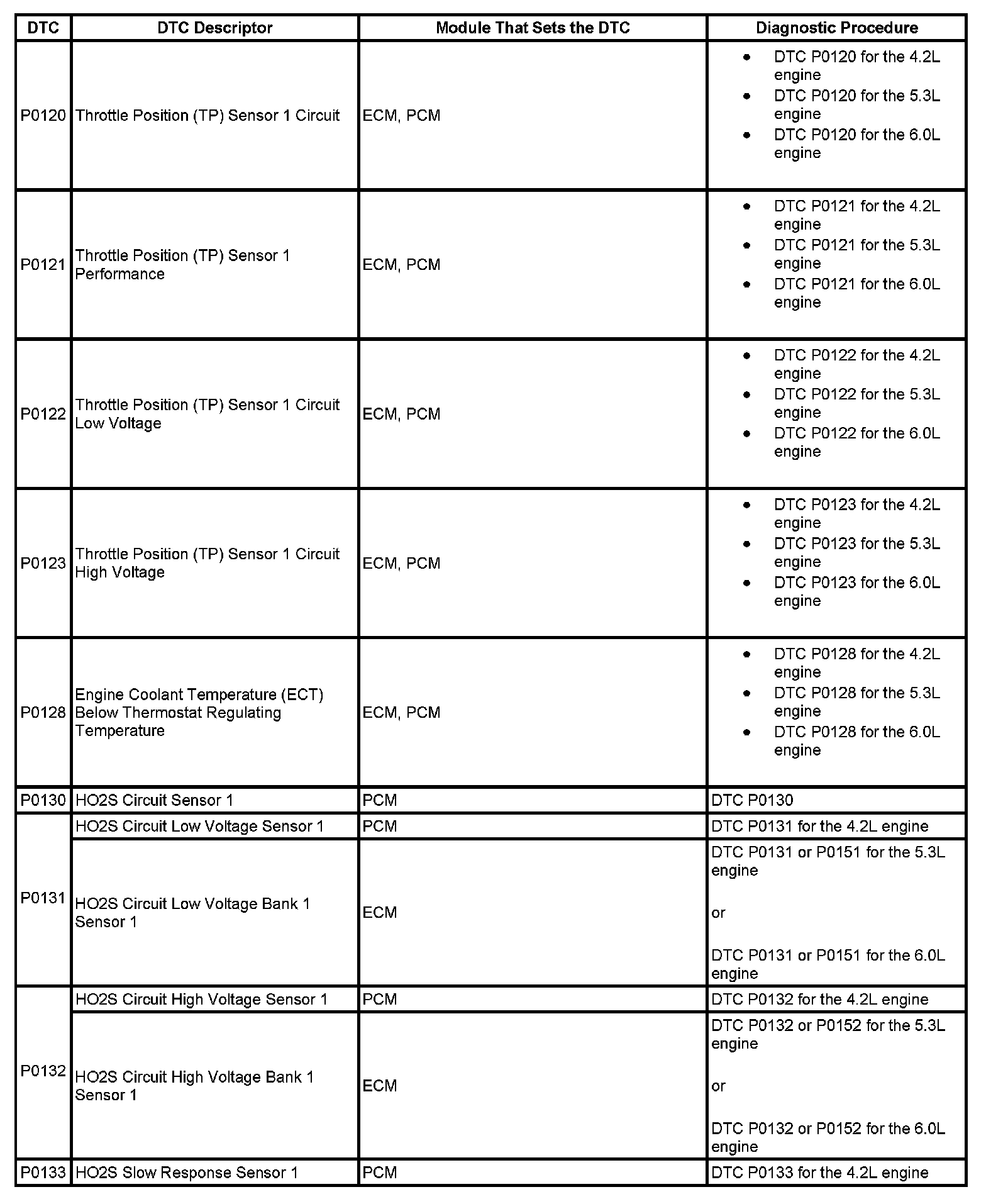 DTCs P0120 - P0133: